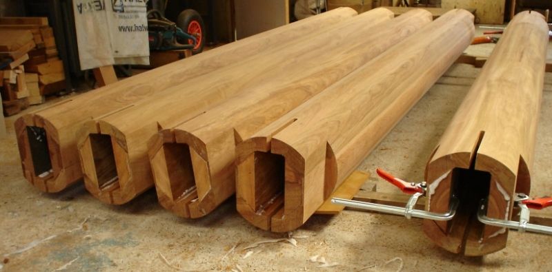 Het concept komt uit de koker van de firma Peeters uit Schoten. In het eigen atelier verlijmt het bedrijf houten profielen tot een ronde houten zuil. De holle kolom vertoont geen barsten en blijft recht ongeacht de lengte of diameter.