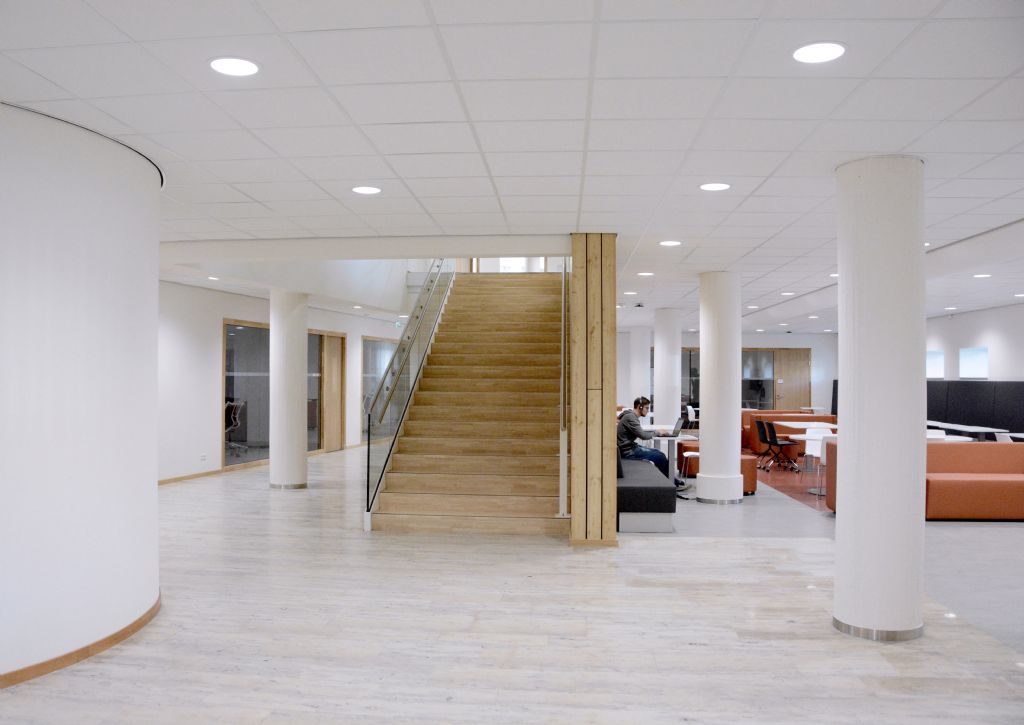 Naast het open leercentrum zijn er veel projectgroepruimten waar de studenten in teams werken aan hun opdrachten. Door de open setting is coaching door docenten op natuurlijke wijze gerealiseerd. Ook het interieur van het restaurant heeft CONIX RDBM Architects met veel verschillende zitvormen zodanig ontworpen, dat er niet alleen gerelaxt en geluncht, maar ook gestudeerd kan worden.