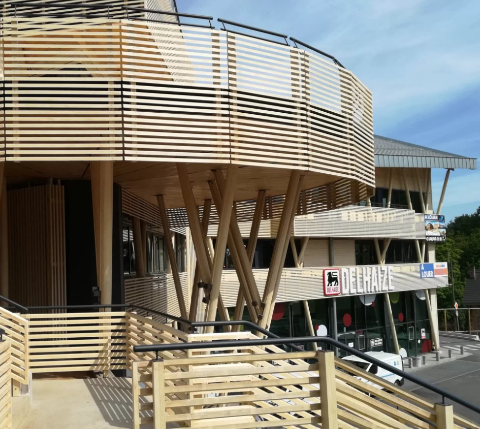 In Chaumont-Gistoux, ten zuidoosten van Brussel, krijgt het klassieke winkelcentrum een opvallende herinterpretatie. Het project onderscheidt zich door een uitgesproken architecturale vormgeving en een doordachte materiaalkeuze, waarbij onder meer houten bekleding van Accoya een belangrijke rol speelt in de gevelafwerking.