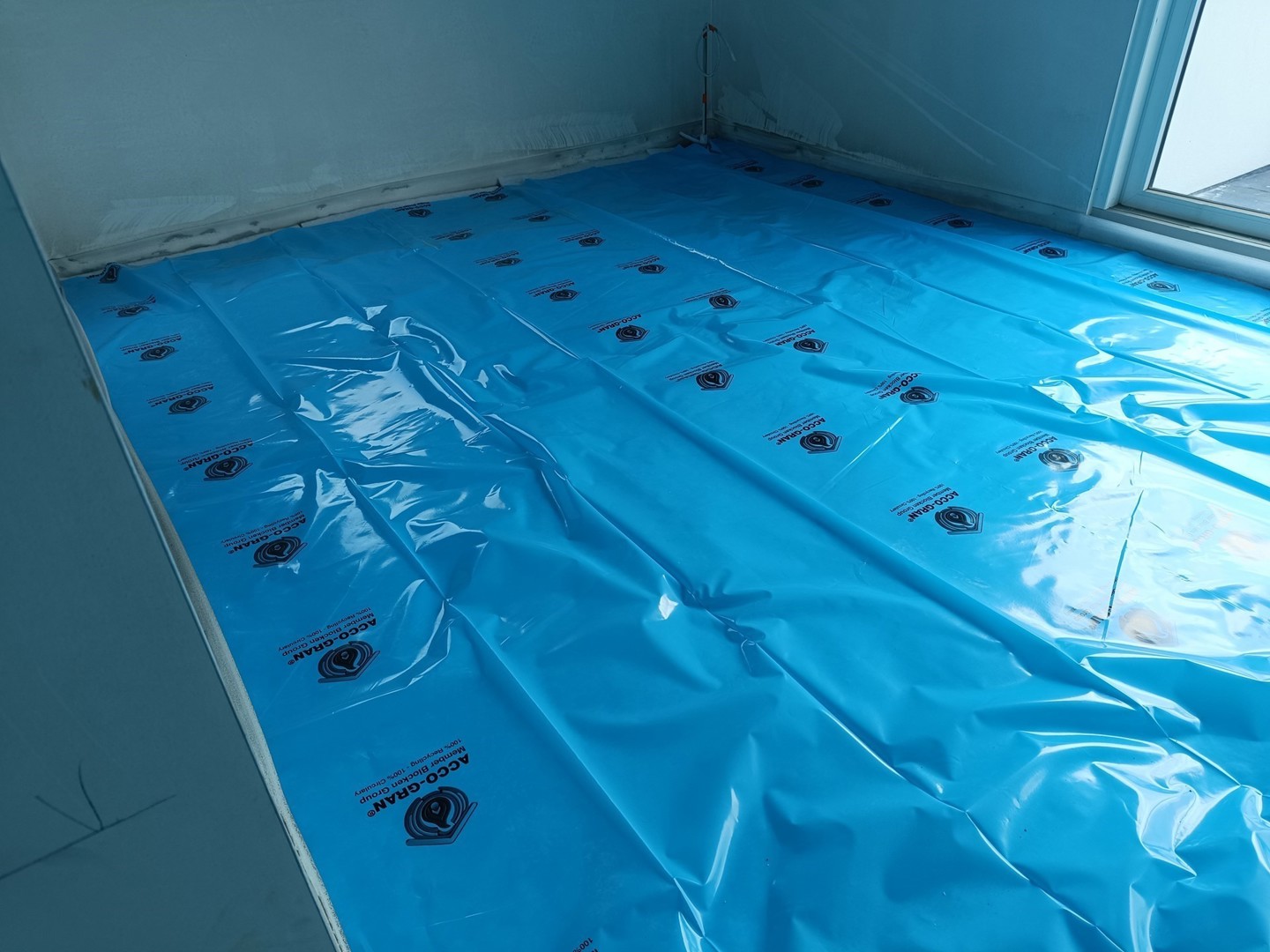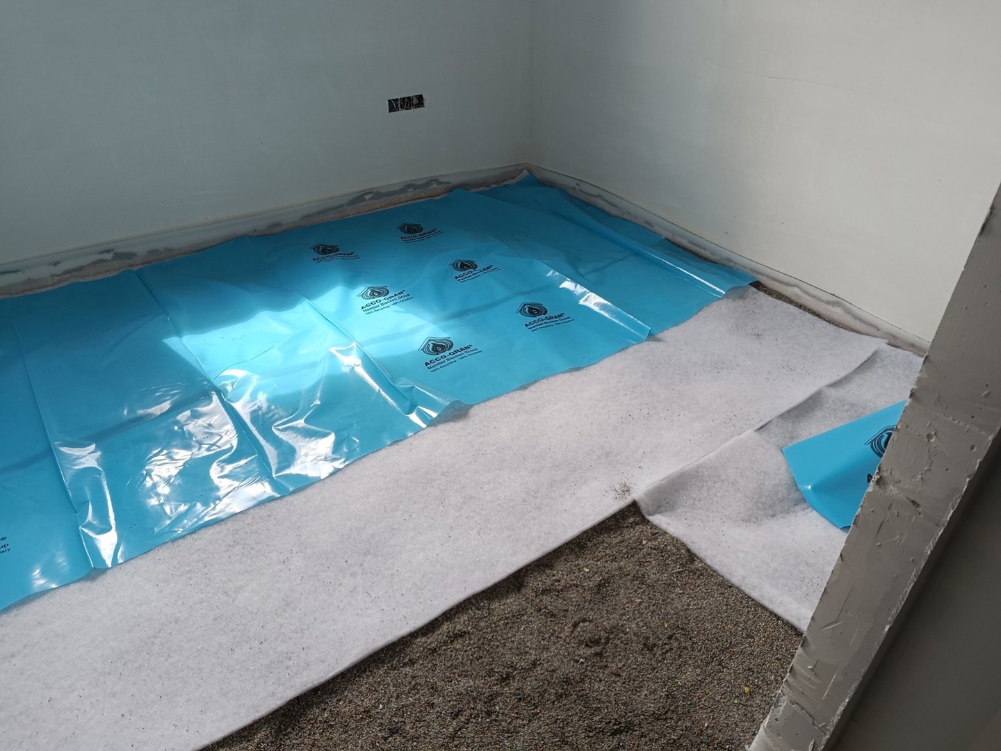 De grootste praktische voordelen van Acco-Gran zijn de eenvoudige toepassing en de indrukwekkende akoestische prestaties. “Onze akoestische cover, gemaakt van gerecycleerde petflessen, biedt reducties tot 39 dB. Dat is ongeëvenaard in de markt”, zegt Tommy Jans. “De akoestische cover is beschikbaar in drie diktes: 5 mm, met 25 dB reductie, 15 mm, met 29 dB reductie, en 28 mm, met 39 dB reductie. Daarover leggen we een plasticfolie die voor 50% uit gerecycleerd plastic bestaat, om het isolatiemateriaal te scheiden van de chape en vloerverwarming.”