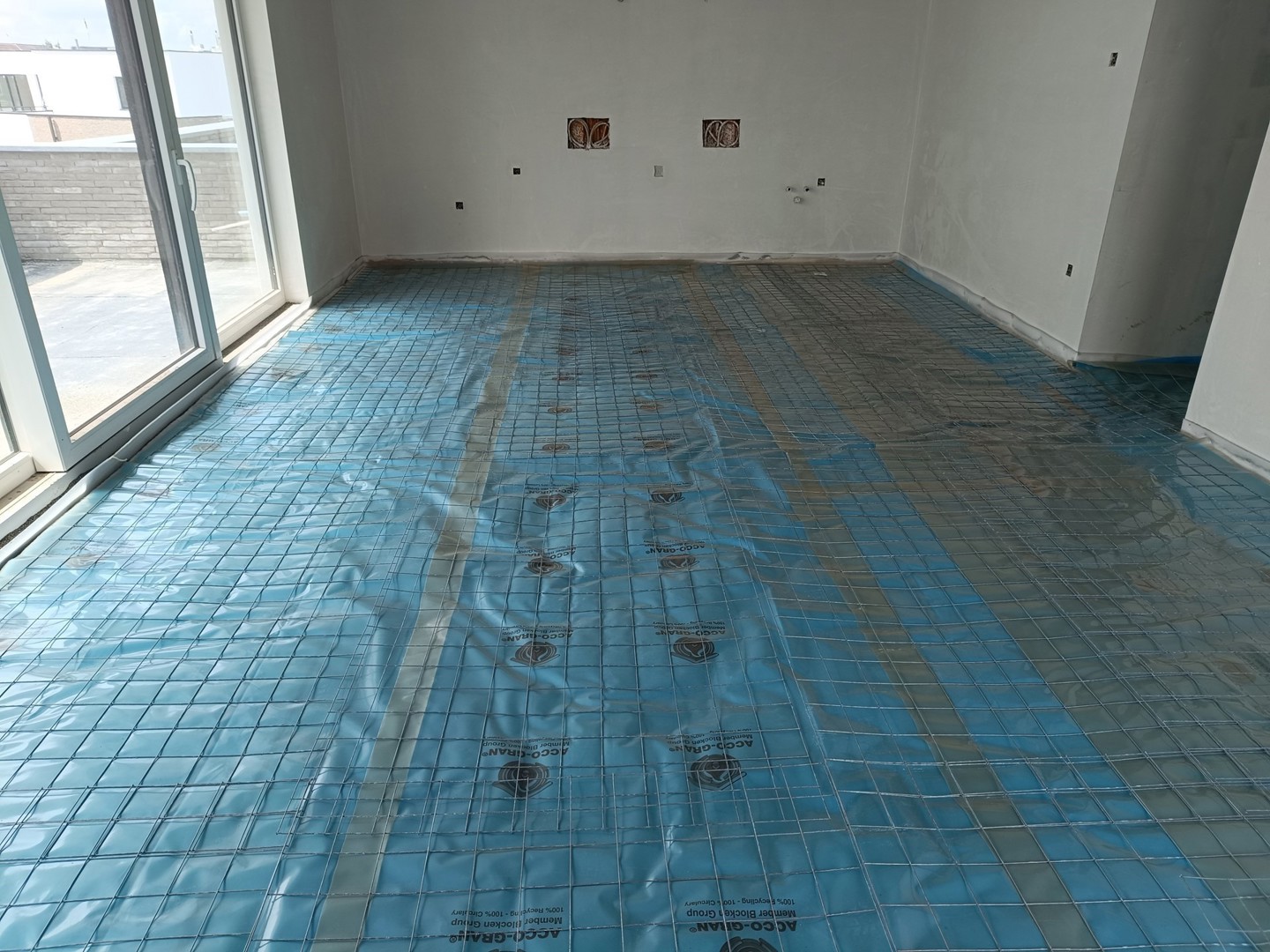 Een van de eerste succesvolle toepassingen van Acco-Gran vond plaats in Scherpenheuvel. “In opdracht van Co-Build hebben we alle tussenvloeren in het project voorzien van Acco-Gran,” vertelt Tommy Jans trots. “We hebben er 26 centimeter Acco-Gran aangebracht, met daarover een chapelaag van 8 à 9 centimeter. Co-Build was bijzonder enthousiast over het circulaire karakter van ons product omdat dat voor dat bedrijf een sterke troef vormt in de verkoop.”