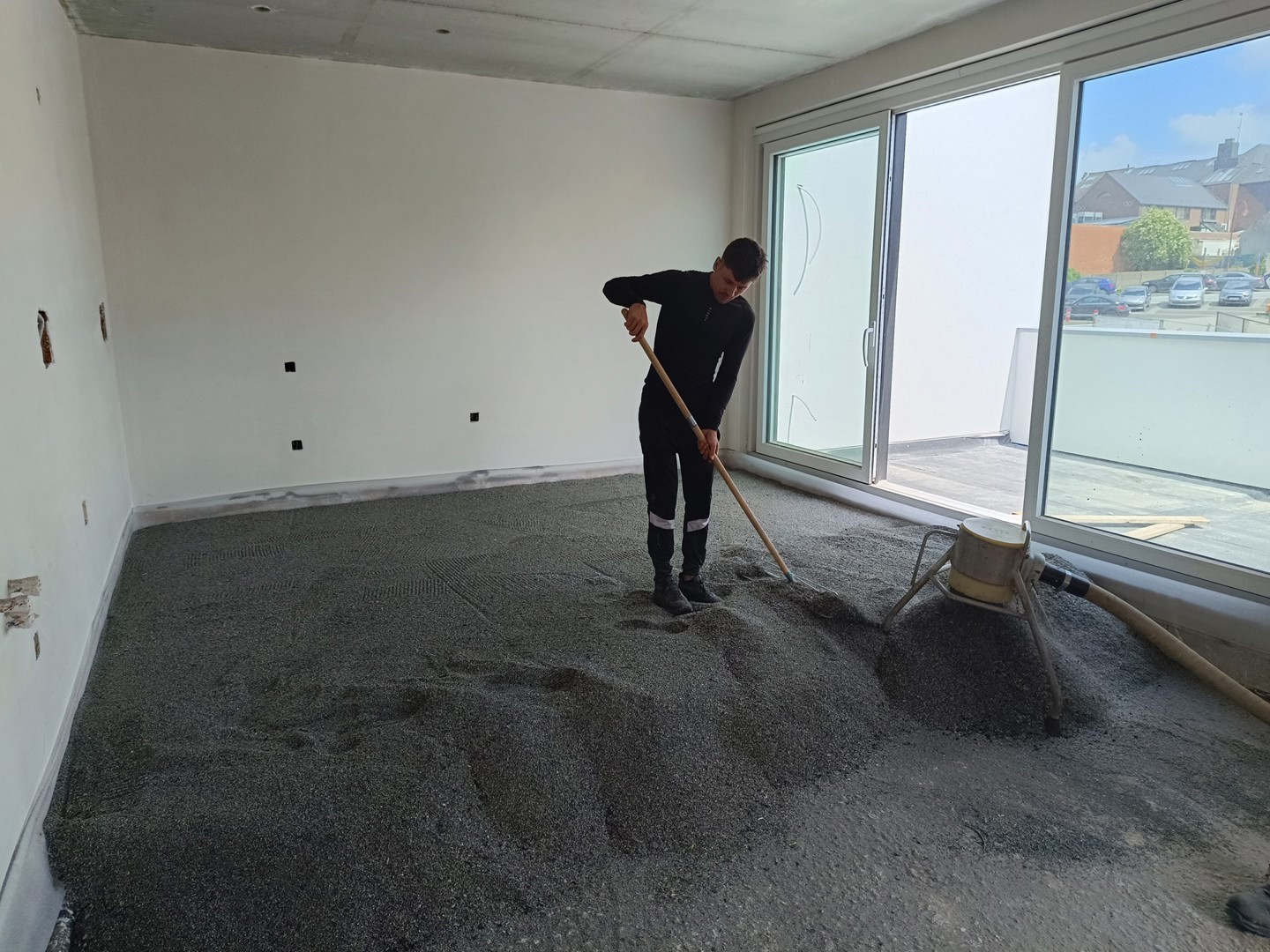 “Ons product vereist geen droogtijden, in tegenstelling tot de alternatieven die vaak gebruik maken van cement of lijm,” benadrukt Tommy Jans. “Je strooit het materiaal simpelweg uit en het is klaar voor de verdere vloeropbouw.”