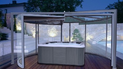 Tot vandaag beperkte Abrisud zich tot zwembaden, maar nu lanceert het merk een innovatie in een totaal andere categorie: panoramische overdekkingen die het tuinsalon of jacuzzi een extra dimensie kunnen geven. Voor de vormgeving liet Abrisud zich inspireren door de natuur. De structuur is rond en bestaat uit brede modules en spiraalvormige, uitschuifbare delen. Deze nieuwe overdekking doet denken aan de vorm van een schelp, een nautilus. Zijn transparante vormgeving, afwerking ‘kristal’, schuift even vlot open als dicht: om te genieten van de zon of je net te beschutten tegen een fris briesje of een bui… De panoramische overdekking kan ook dienst doen als miniveranda en wie houdt van wellness en relaxatie, kan onder de panoramische overdekking ook een buiten-jacuzzi kwijt. Op die manier is dit Abrisud product een oplossing om 365 dagen per jaar van de tuin te genieten, weer of geen weer.