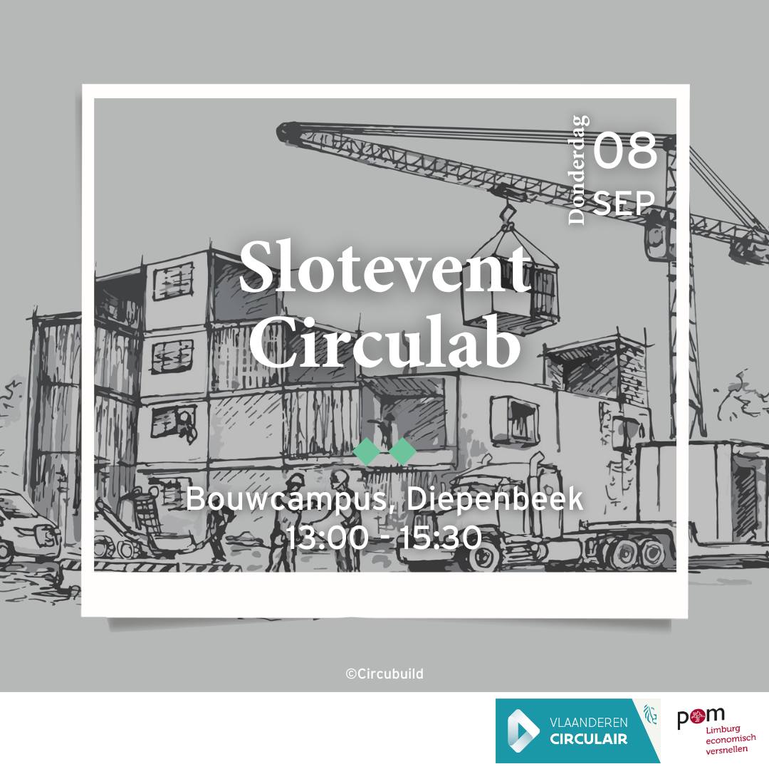 Wie op 8 september graag het slotevent van Circulab bijwoont, heeft nog slechts tot en met 30 augustus de tijd om zich daarvoor in te schrijven. Circulab is een leer- en onderzoekstraject gekoppeld aan de nieuwe bouwcampus die tegen 2024 zal verrijzen op de campus Diepenbeek van de UHasselt en die circulair bouwen zal promoten vanuit een breed perspectief en verschillende expertises. Het project is een multidisciplinaire samenwerking tussen de Confederatie Bouw Limburg, POM Limburg en de UHasselt en kwam tot stand dankzij middelen van Vlaanderen Circulair.
