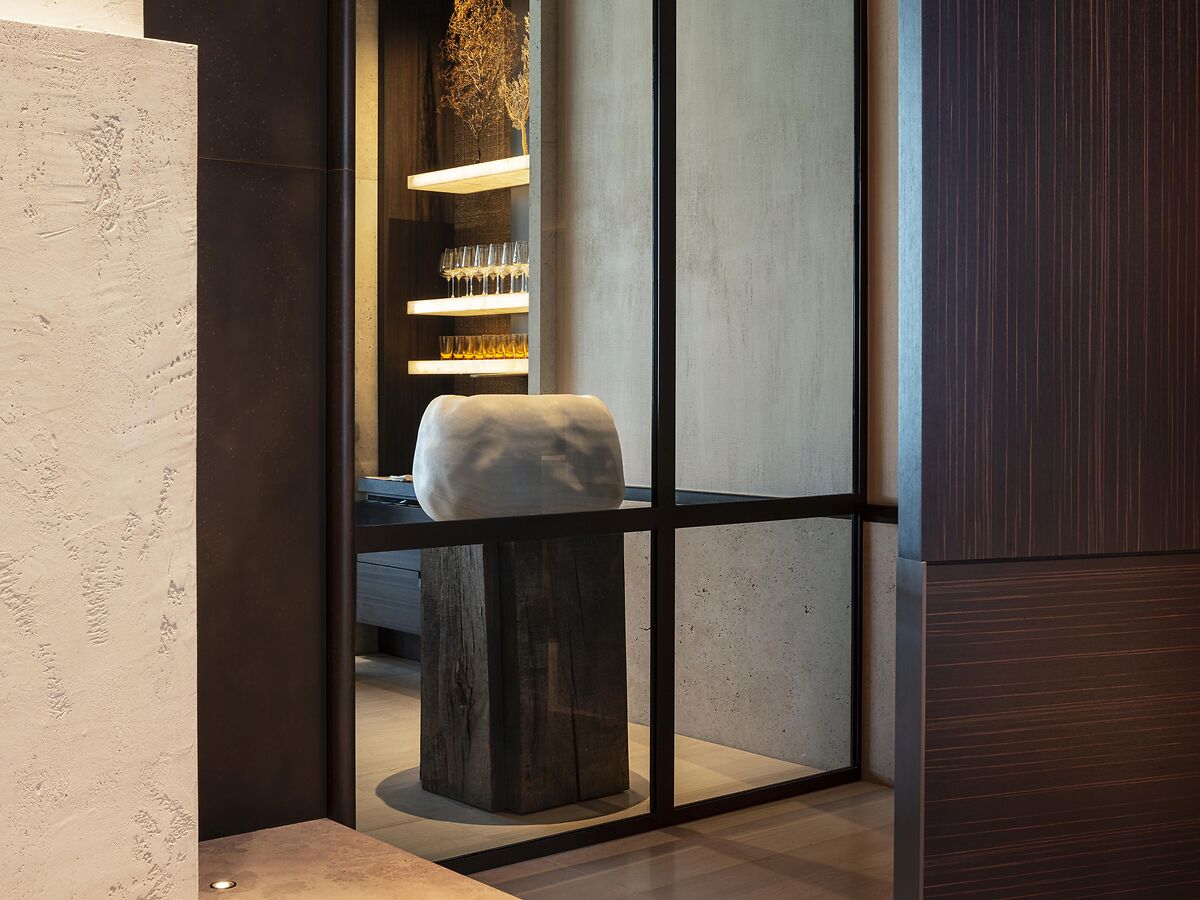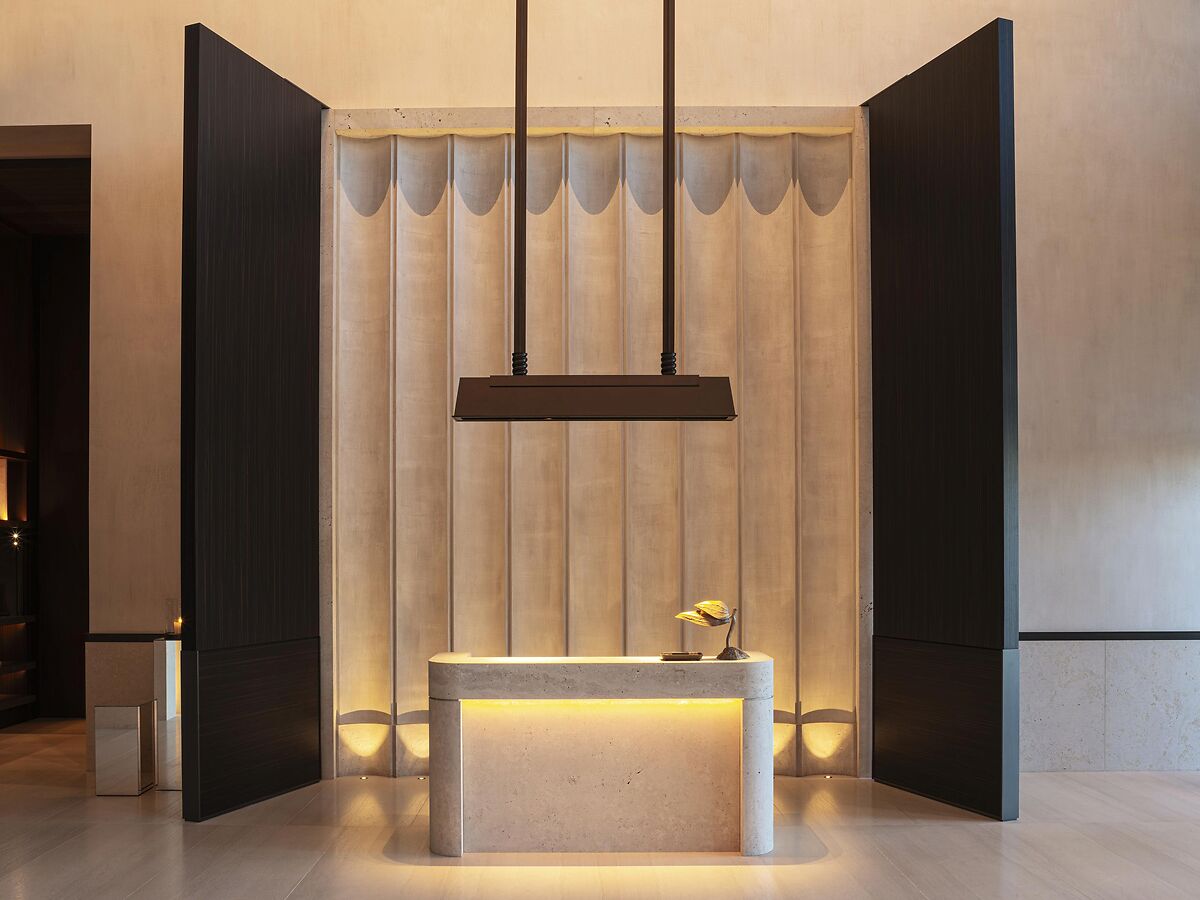 De fijn afgestemde interieurs van het hotel zijn voorzien van een bijzondere mix van zowel door Sestig op maat gemaakte items en ingekochte stukken van ontwerpers zoals Jean-Michel Frank en Christian Liaigre. Oppervlakken op maat, zoals een serie handgemaakte, sculpturale muurreliëfs die zandformaties aan het strand nabootsen en op maat gemaakte geweven metalen panelen die als ruimteverdelers fungeren, hullen alles in een sfeer van hoge ruimtelijke verfijning.