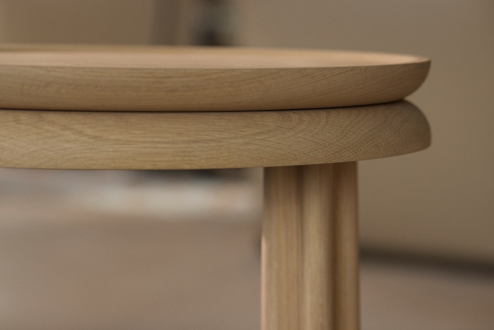 Fijne details zijn bijvoorbeeld subtiel weggewerkte scharnierpunten of een elegante, afgeschuinde boord van een plateau of schaal die tegelijk voor grip zorgt. Het illustreert hoe functie en esthetiek voor Filip Tack onlosmakelijk met elkaar verbonden zijn.