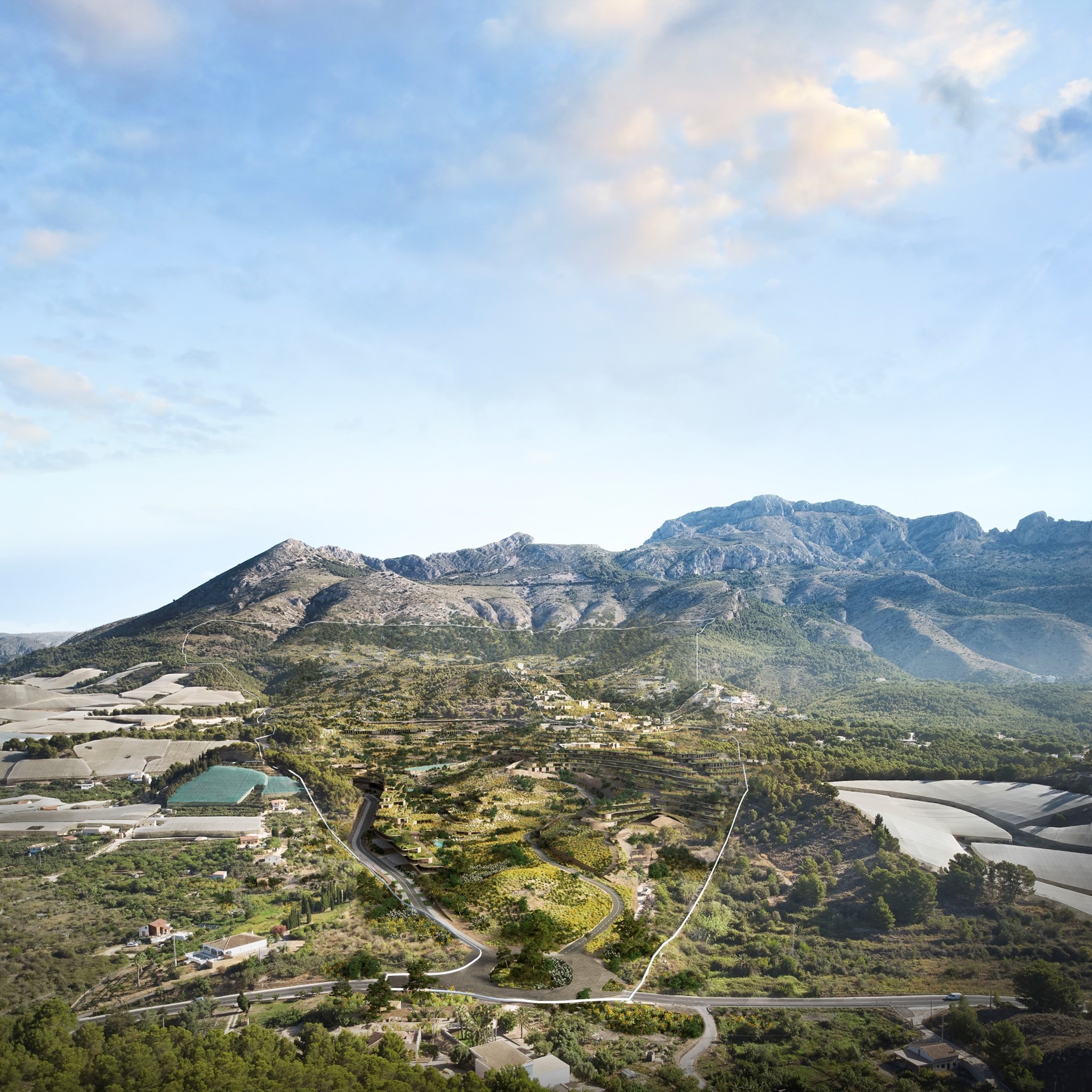 Behalve onze buurlanden – in het eerste deel vertelde Massimo Pignanelli uitgebreid over een aantal belangrijke projecten in Nederland – zoekt UAU Collectiv het ook zuidelijker. In Sierra de Bernia, Spanje, is het bureau bezig met het ontwerpen van een masterplan dat het gebied zal transformeren tot een harmonieuze omgeving waar mens, kunst en natuur samenkomen.