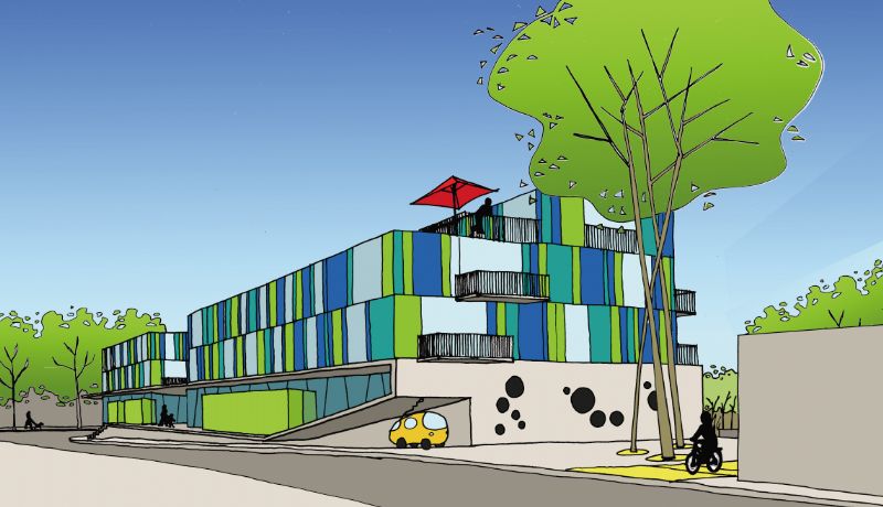 Naast het opvallende gevelontwerp is er bijzondere aandacht besteed aan duurzame bouwtechnieken. Zo wordt er bij de bouw gebruik gemaakt van onderhoudsvriendelijke en duurzame materialen. Het gebouw zelf is een laag energiegebouw met doorzonwoningen met een oost-west oriëntatie en groendaken op het energiedak. Voor de academie op het gelijkvloers is een warmtepomp voorzien.