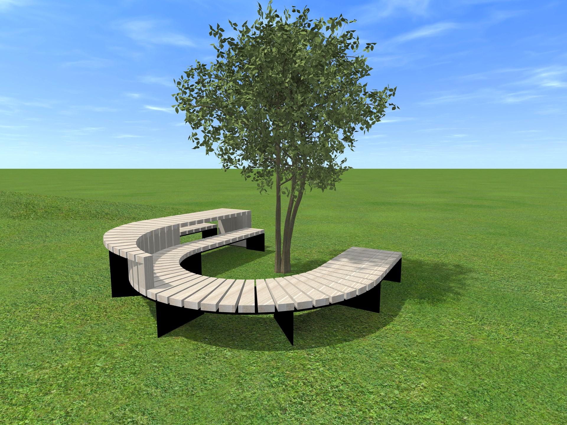 Gaandeweg ging het ontwerp van Gregory over naar de letters van haar naam. De J als rugleuning en tegelijk ook de tafel van de bank. De U als Uitnodigende magneet rond een centrale boom: een verwijzing naar Julies aantrekkingskracht en het feit dat ze door iedereen zo graag was gezien. De I als losse zitbank. En de boom zelf als “puntje op de i”.