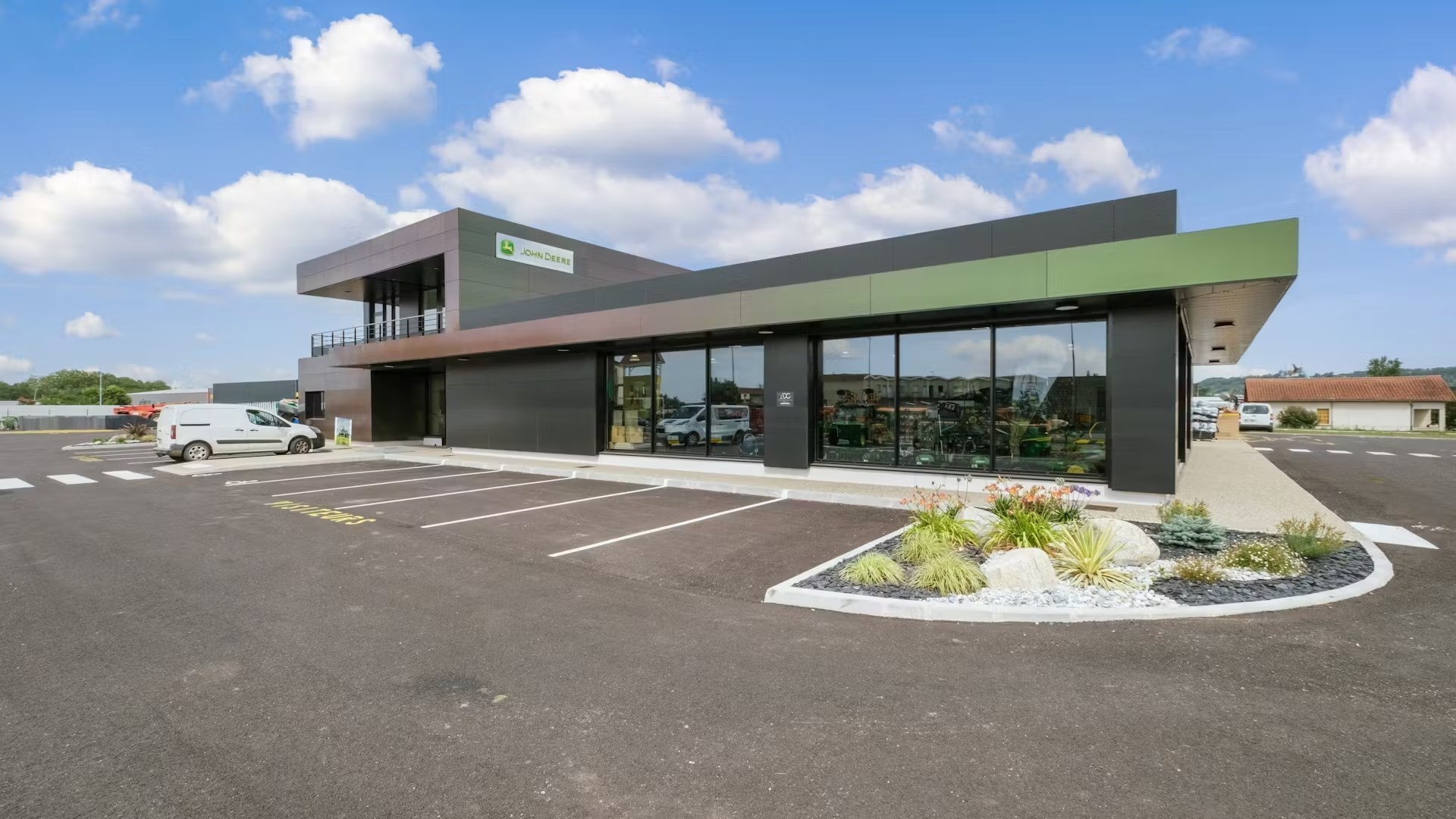 Het agrarisch bedrijf John Deere, in het zuidwesten van Frankrijk, toont de veelzijdigheid van Rockpanel gevelbekleding van geperst steenwol. De gevel is voorzien van een stralende coating met Rockpanel Colours en Chameleon, wat de grenzeloze ontwerpmogelijkheden van Rockpanel illustreert. Daniel Gamba staat aan het hoofd van Atlantic Design Construction, een projectmanagementbedrijf dat gespecialiseerd is in het ontwerpen en bouwen van gebouwen voor de industriële en commerciële sector.