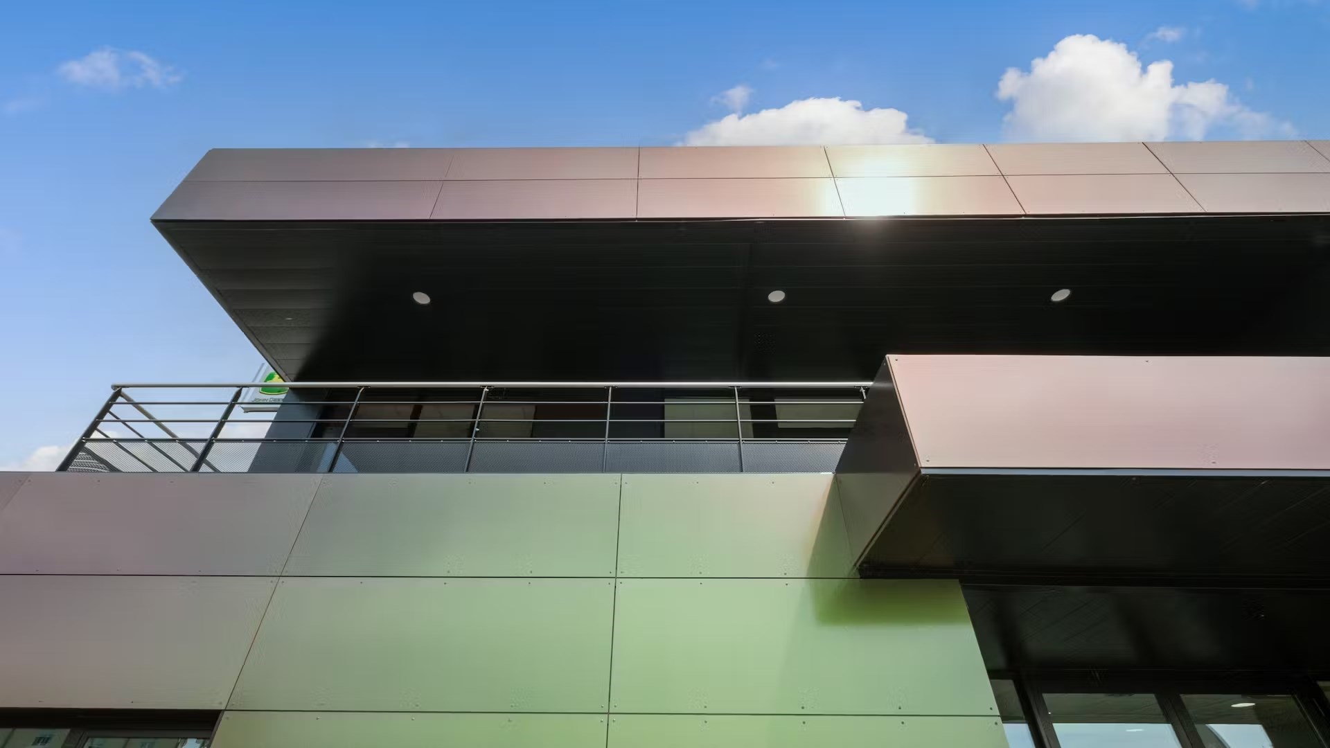 Voor de afwerking zijn twee bijpassende RAL-kleuren uit het Rockpanel Colours assortiment gebruikt voor de werkplaatsen en Rockpanel Chameleon voor het administratiegebouw. Deze afwerking met een geborsteld metaal look heeft een uniek iriserend effect dankzij een innovatieve kristaal laag die op de panelen is aangebracht. Het resultaat is dat de kleur en het uiterlijk de hele dag door veranderen, afhankelijk van het zonlicht. Zo valt het gebouw op: "toen de sleutels werden overhandigd, was iedereen tevreden", vertelt de projectmanager trots.
