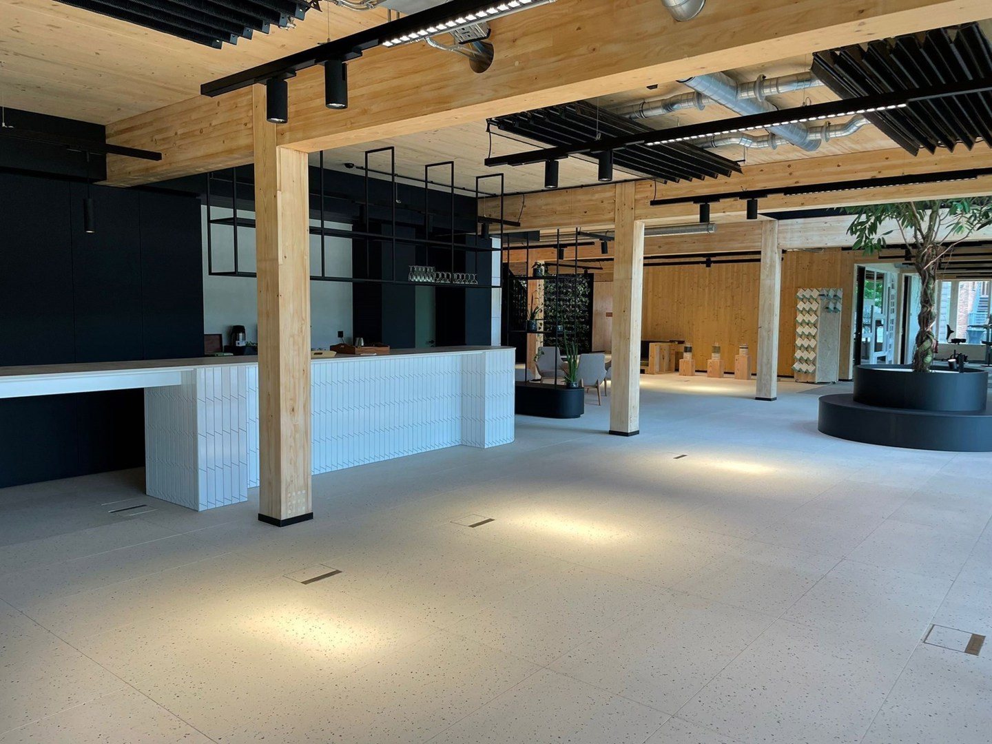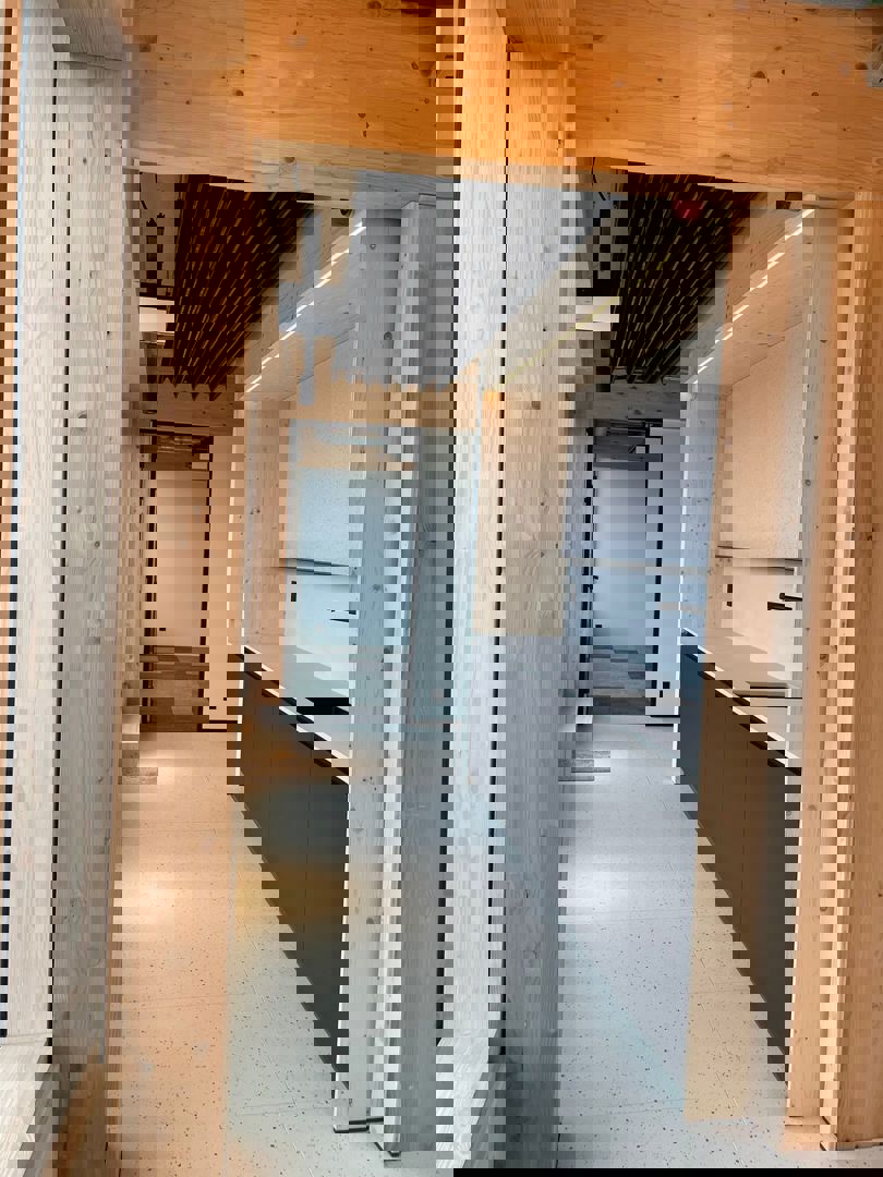 Werkelijk elk ander materiaal waaruit 't Centrum bestaat is herbruikbaar of ecologisch, denk aan wanden van JUUNOO, vloerisolatie van Ecoschelp of CLT van PEFC.