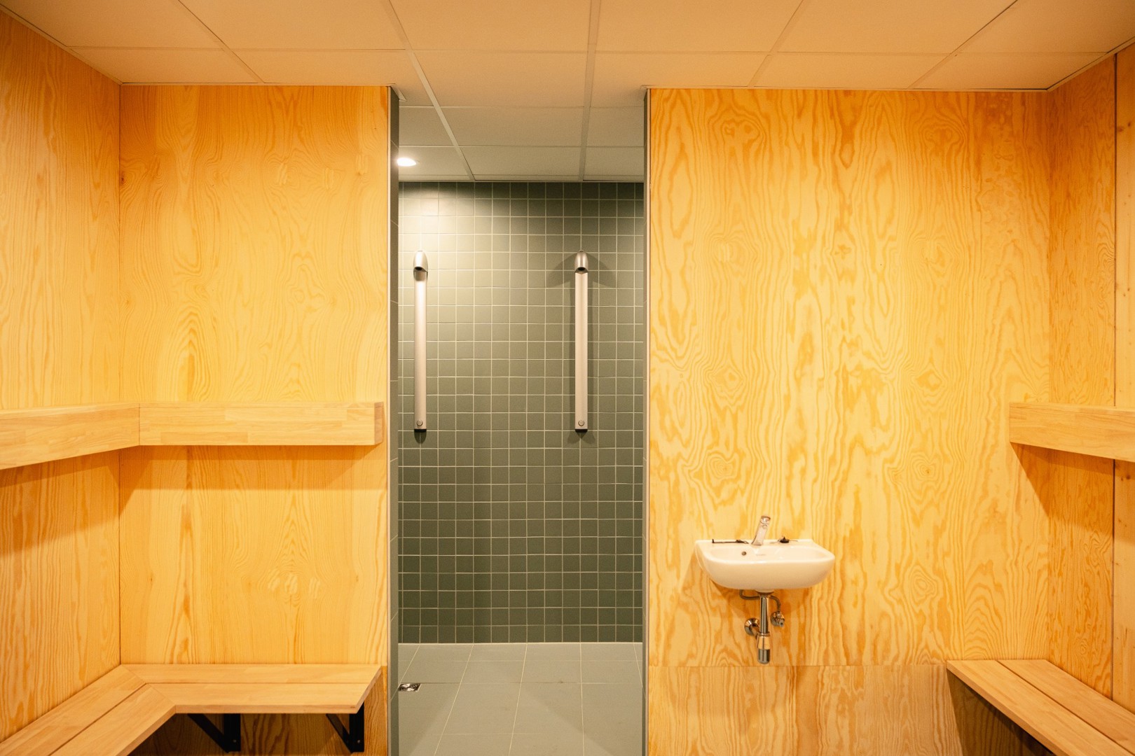 Deze toekomstgerichtheid vertaalt zich ook ruimtelijk. Het gebouw is opgebouwd uit twee volumes: een hoger deel aan de zuidzijde dat de scoutslokalen huisvest en uitkijkt op het speelveld, en een langwerpig lager volume dat de sportinfrastructuur en cafetaria van City Pirates bevat. Zo ontstaat een subtiel evenwicht tussen openheid, functionaliteit en beleving.