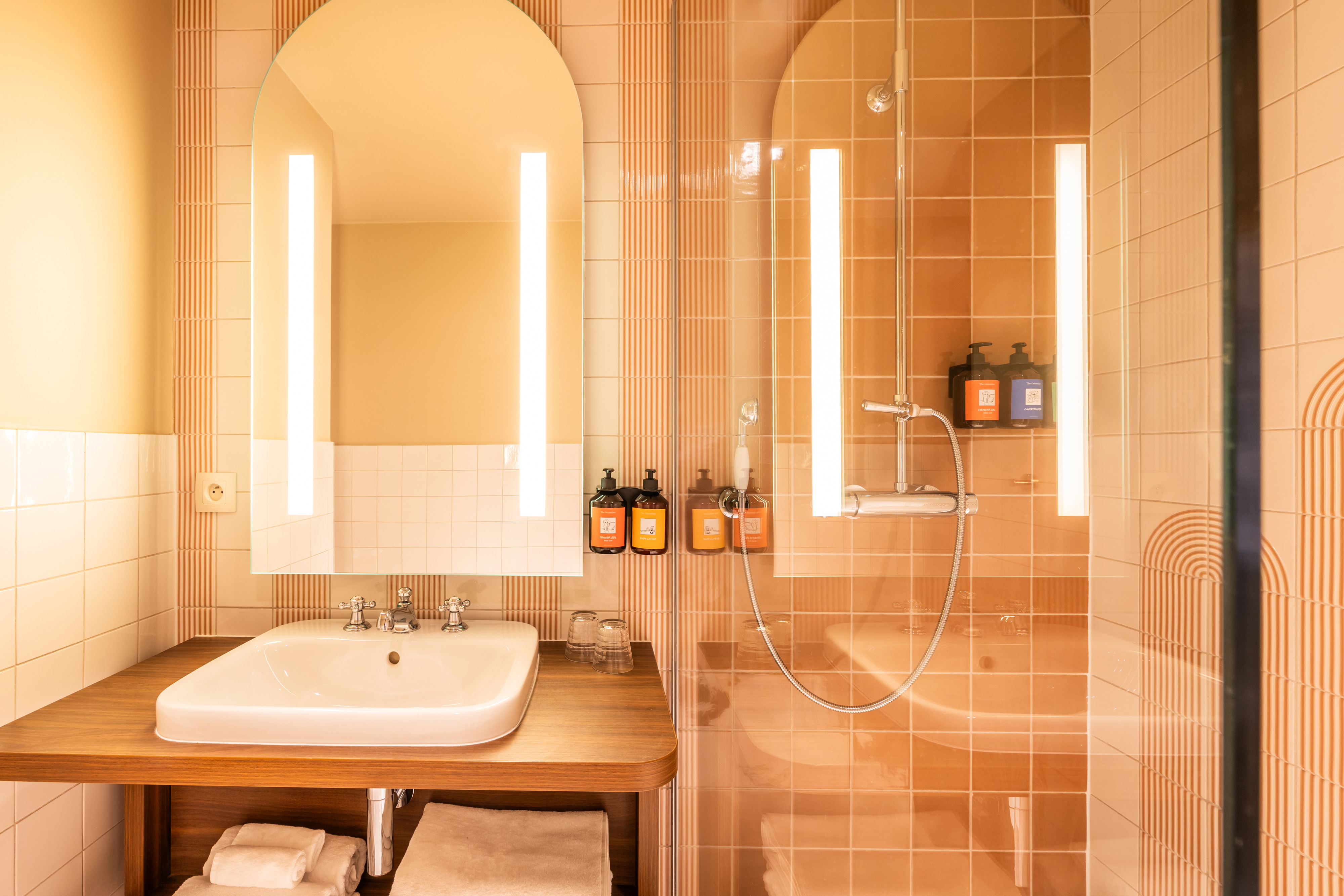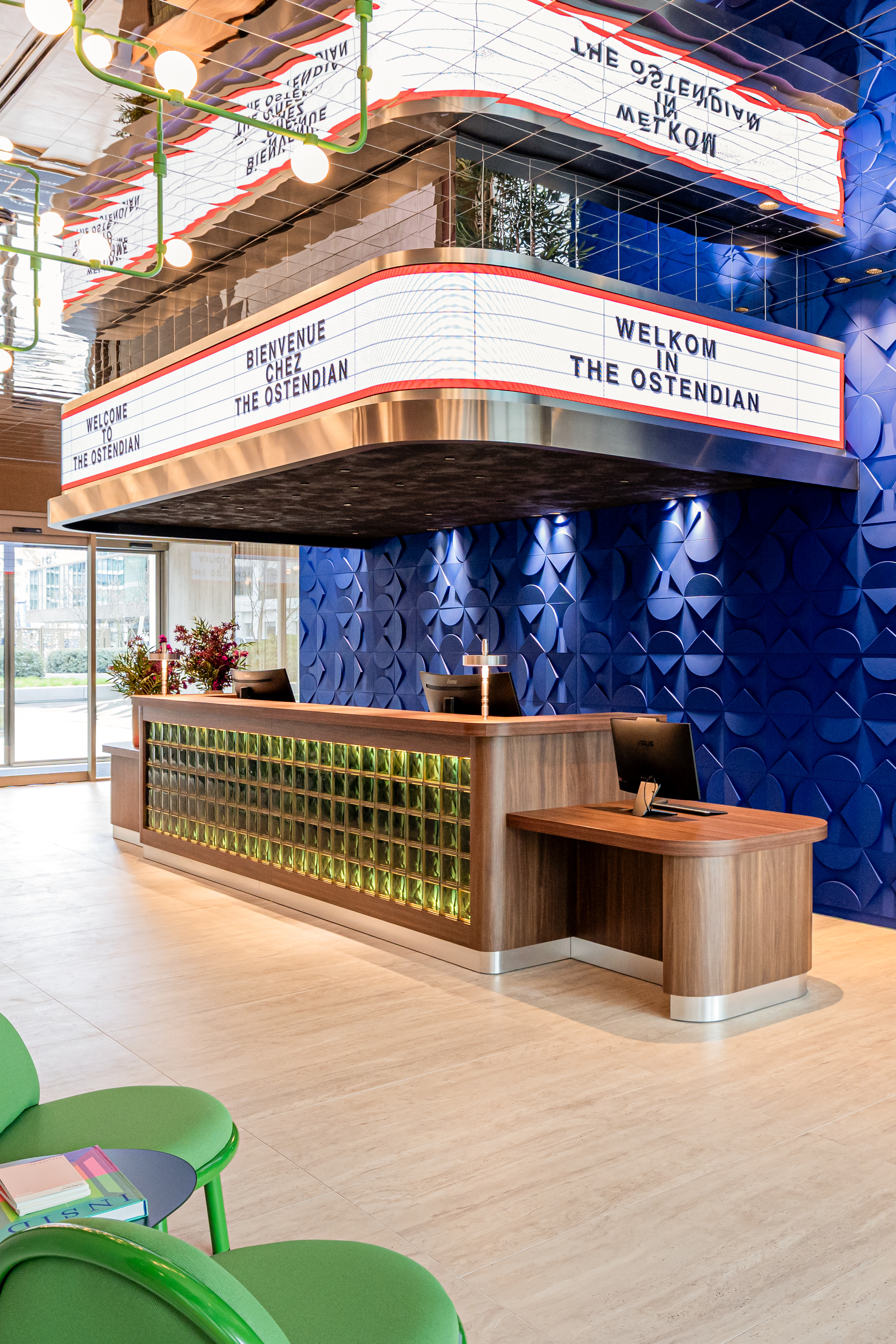 Bij binnenkomst voel je onmiddellijk de stad in het interieur. BLCN DESIGN werkte ruim twee jaar aan het project, intensief betrokken vanaf de eerste schetsen tot en met de inrichting en styling. Er werd nauw samengewerkt met lokale artiesten, organisaties en ondernemers om elke ruimte doordrenkt te maken met de sfeer en eigenheid van Oostende. Dit is geen generiek hotelinterieur: elk detail, elke textuur en elke kleur is gekozen om de identiteit van de stad te laten spreken.