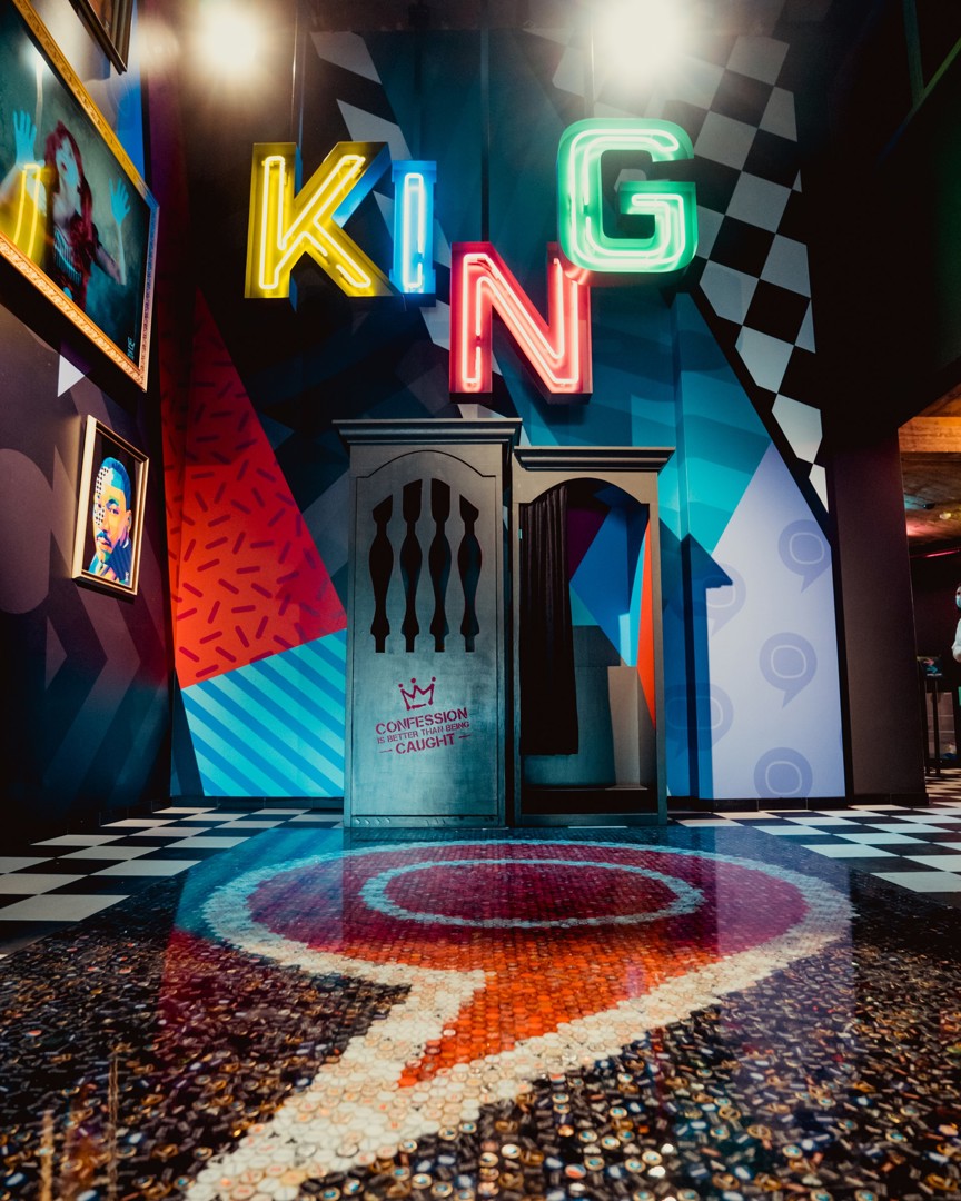 In King Upkot, de nieuwe invulling van een gebouw in de Koningsstraat dat vroeger eigendom was van de Waalse overheid en daarna enkele jaren bezet werd door krakers, naar een renovatieontwerp van Planomatic, vind je zo onder meer een vloer die bestaat uit maar liefst 11.000 kroonkurken die met epoxy verzegeld werden, bankjes gemaakt van oude boeken en een koninklijke troon – de naam van het project laat zich op verschillende manieren gevoelen in het interieur – opgebouwd uit oude televisietoestellen en muziekboxen, waar naar believen Instagram-kiekjes kunnen worden gemaakt.