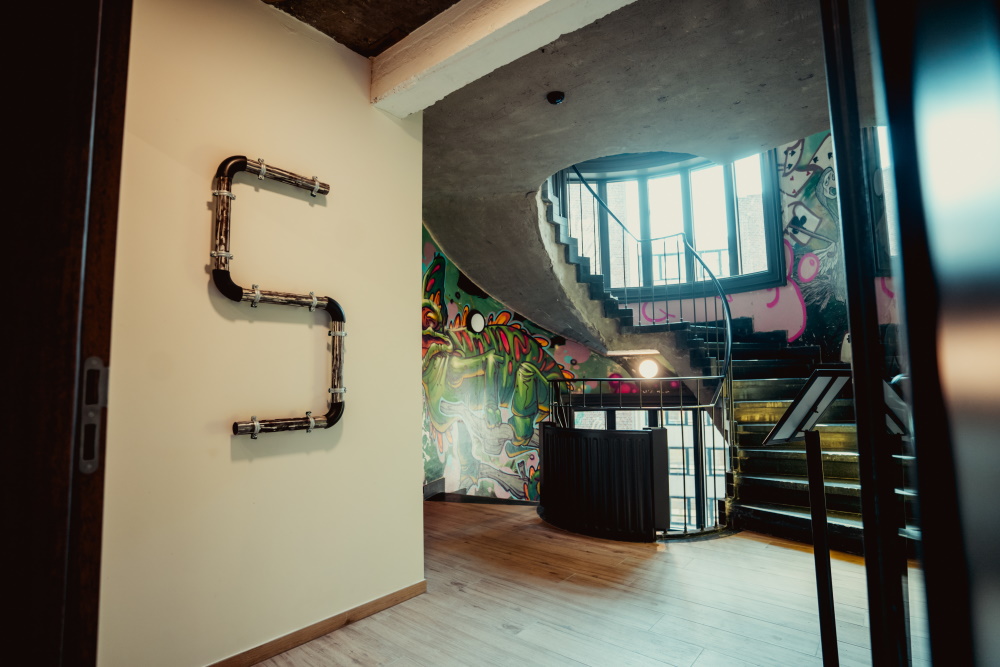 Upgrade Estate koos er ook voor de graffiti aangebracht door krakers die het pand tot voor kort bezetten, maximaal te bewaren en te laten aanvullen door een street artist.