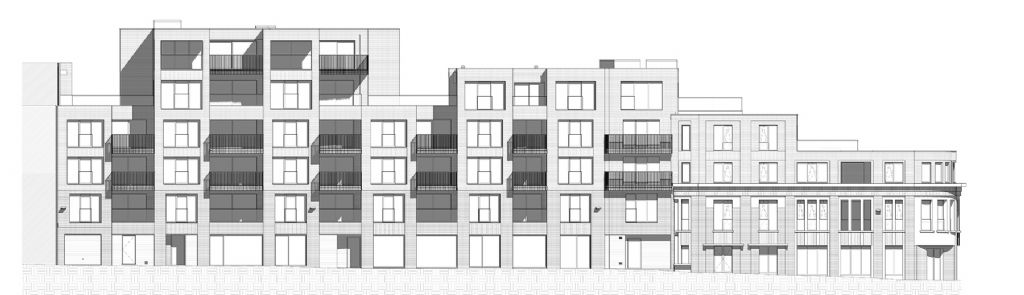Met de bovenbouw op het voormalige telecommunicatiekantoor realiseert B2Ai een waardige toevoeging, met respect voor wat bestond. De dakrand van het bestaande gebouw blijft behouden en de ritmering van de gevelopeningen wordt overgenomen. De twee bouwlagen boven op de oorspronkelijke gevel lopen naar de Basiliekstraat toe terug naar één extra verdieping, om aan te sluiten op de schaal van de winkel- en horecapanden. De lichte baksteen vormt een eenheid met het eveneens nieuw te bouwen naastgelegen wooncomplex.