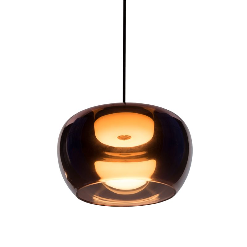 Wetro dijt verder op de retro trend. De lamp in handgeblazen glas komt in verschillende lengtes. Alleen hangt ze mooi boven een bar, maar in groep vormt Wetro een opvallende luster. De typerende bruine kleur is de verdienste van een koperen coating.