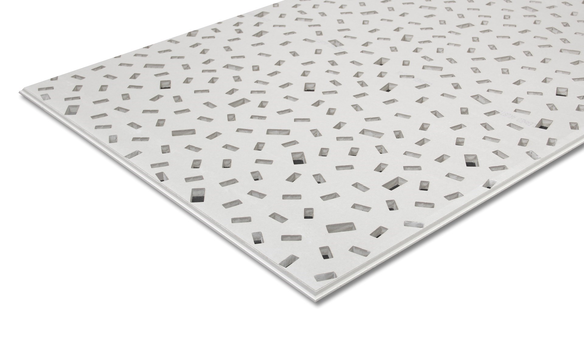 Plafonds spelen een belangrijke rol bij het bepalen van de ruimtebeleving. Met de geperforeerde gipsplaten van Knauf geef je de ruimte niet alleen een esthetische meerwaarde, maar absorbeer je ook geluid op een unieke manier. Bovendien zijn ze nu eenvoudiger dan ooit te plaatsen. Het gewenste type perforatie geeft de ruimte een eigentijdse uitstraling, terwijl het witte of zwarte vlies aan de achterzijde bijdraagt aan het ritmische effect.