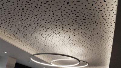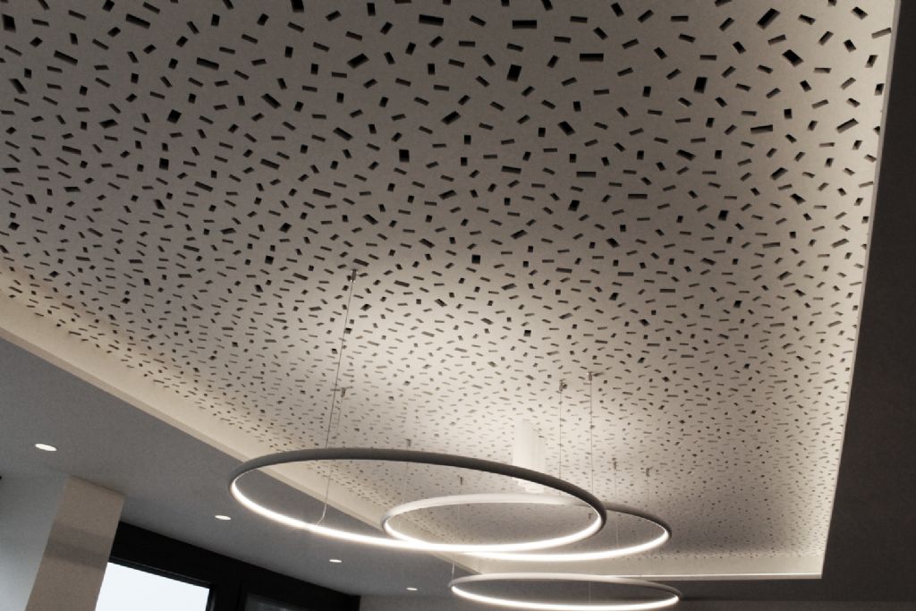 Plafonds zijn belangrijke bouwelementen die mee de ruimtebeleving bepalen. Logisch dat ontwerpers hieraan extra aandacht besteden en bijzondere voordelen weten te waarderen. Met de geperforeerde gipsplaten van Knauf geef je de ruimte niet alleen een esthetische meerwaarde, maar absorbeer je ook de storende geluiden. Bovenop deze voordelen zuiveren de SoundDesign Cleaneo-gipsplaten de lucht en zijn ze eenvoudig te plaatsen. Met de verschillende types – waaronder het nieuwe motief Confetti met onregelmatige rechthoekige perforaties – geeft Knauf ook alle vrijheid in design.