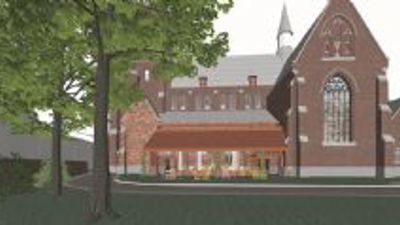 De opvallendste nieuwbouw is een groot, licht paviljoen dat dienstdoet als refter. Deze ruimte ligt tussen het hoofdgebouw en de oorspronkelijke schoolmuur in, en vormt een verbindend element tussen oud en nieuw. Met zijn uitkragende luifels, twee open tuingevels en luchtige structuur contrasteert het paviljoen bewust met de zwaarte van de oudbouw, zonder ermee te botsen. Binnen- en buitenruimte vloeien hier visueel én functioneel in elkaar over.