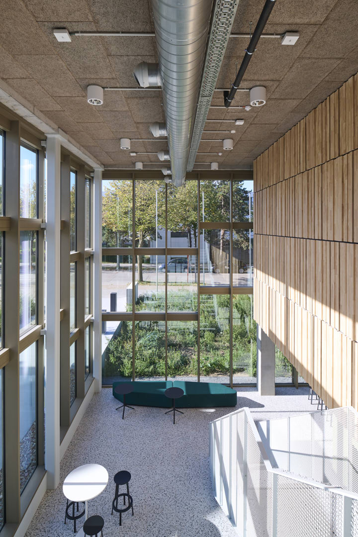 “We wilden een compact, kubusvormig gebouw creëren dat slechts 65% van het terrein inneemt, zodat uitbreiding mogelijk blijft,” vertelt Markus Hanssens, architect bij Abscis Architecten. “De strategische plaatsing van liften en gangen maakt toekomstige uitbreidingen eenvoudig.”
