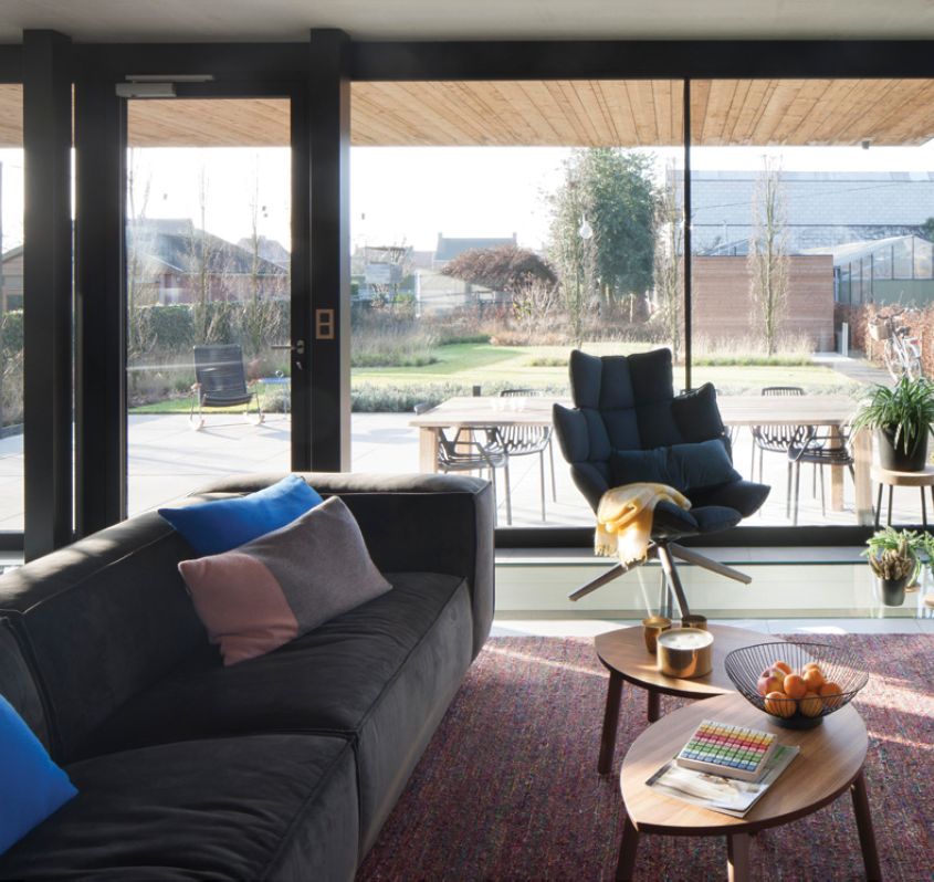 De industriële look van het beton in het interieur was een bewuste keuze. Het materiaal vormt zo een canvas, een neutrale achtergrond waaraan de bewoners hun ziel kunnen geven door er elementen aan toe te voegen. De losse invulling maakt de woning tot wat ze is.