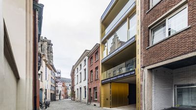 Zo’n twintig jaar geleden kampte kunstencentrum nona in Mechelen met plaatsgebrek. Bovendien had de bestaande art-decozaal ook haar beperkingen en voldeed ze qua flexibiliteit niet langer aan de eisen die rond de eeuwwisseling golden. De oplossing: een tweede theaterzaal met foyer en polyvalente ruimte op de site van de voormalige Mechelse Drukkerijen rechts achter het kunstencentrum. Het zou voornamelijk om financiële redenen nog tot 2017 duren eer er effectief begonnen werd aan de nieuwbouw en pas in 2020 was die klaar, maar het resultaat was wel het wachten waard: een knap staaltje ruimtelijk rendement, prachtig verweven met de bestaande theaterzaal én een prachtig voorbeeld van circulair bouwen. Zo is het nieuwe gebouw een van de eerste in België die werden opgetrokken in groen of circulair beton. “Het verdichten van een stad hoeft niet altijd negatief te worden bekeken”, vertelt architect David Driesen (dmvA architecten).