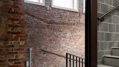 De academie kreeg een industriële look. De bestaande muren werden casco gezet en er werd een gepolierde betonvloer voorzien. De buitenschil van het gebouw werd behouden en binnen werd een staalstructuur voorzien om de verschillende verdiepingen te dragen. De nieuw te metselen muren werden bewust uitgevoerd in betonstenen. Naast de look was budgetbeheer even belangrijk.