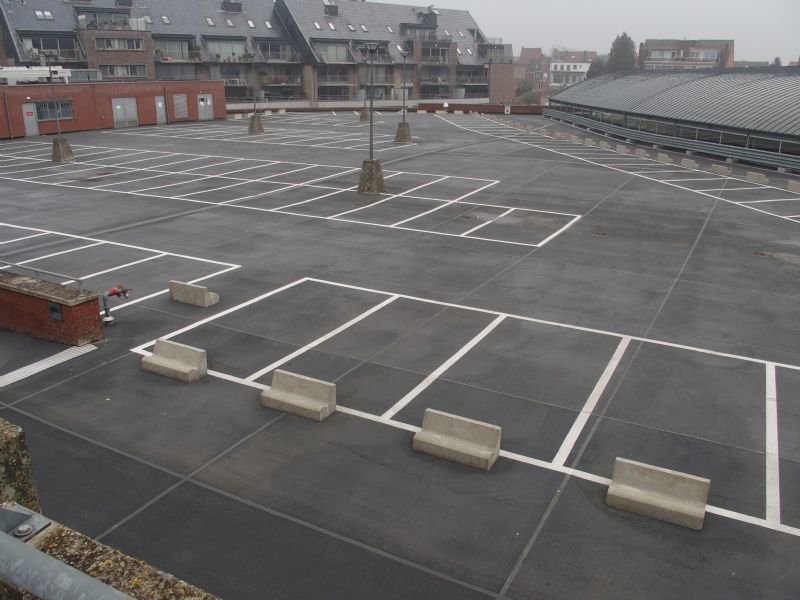 Het parkeerdag van het shoppingcenter in Ninove was dringend aan een update toe. L3M architecten (nu OSK-AR) nam de renovatie voor zijn rekening. Lekkages behoren voortaan tot het verleden, deels door de toepassing van een Triflex-coating.