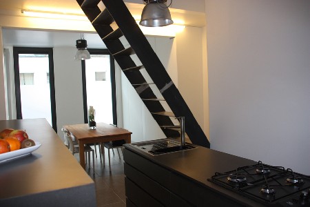 Een arbeiderswoning - 37m² grond, 97m² woonoppervlak, geen voordeur, geen trap, kortom bijna niets - werd omgebouwd tot een ideale starterswoning, maar met een duidelijke visie om het volledig te kunnen inrichten als kantoor.