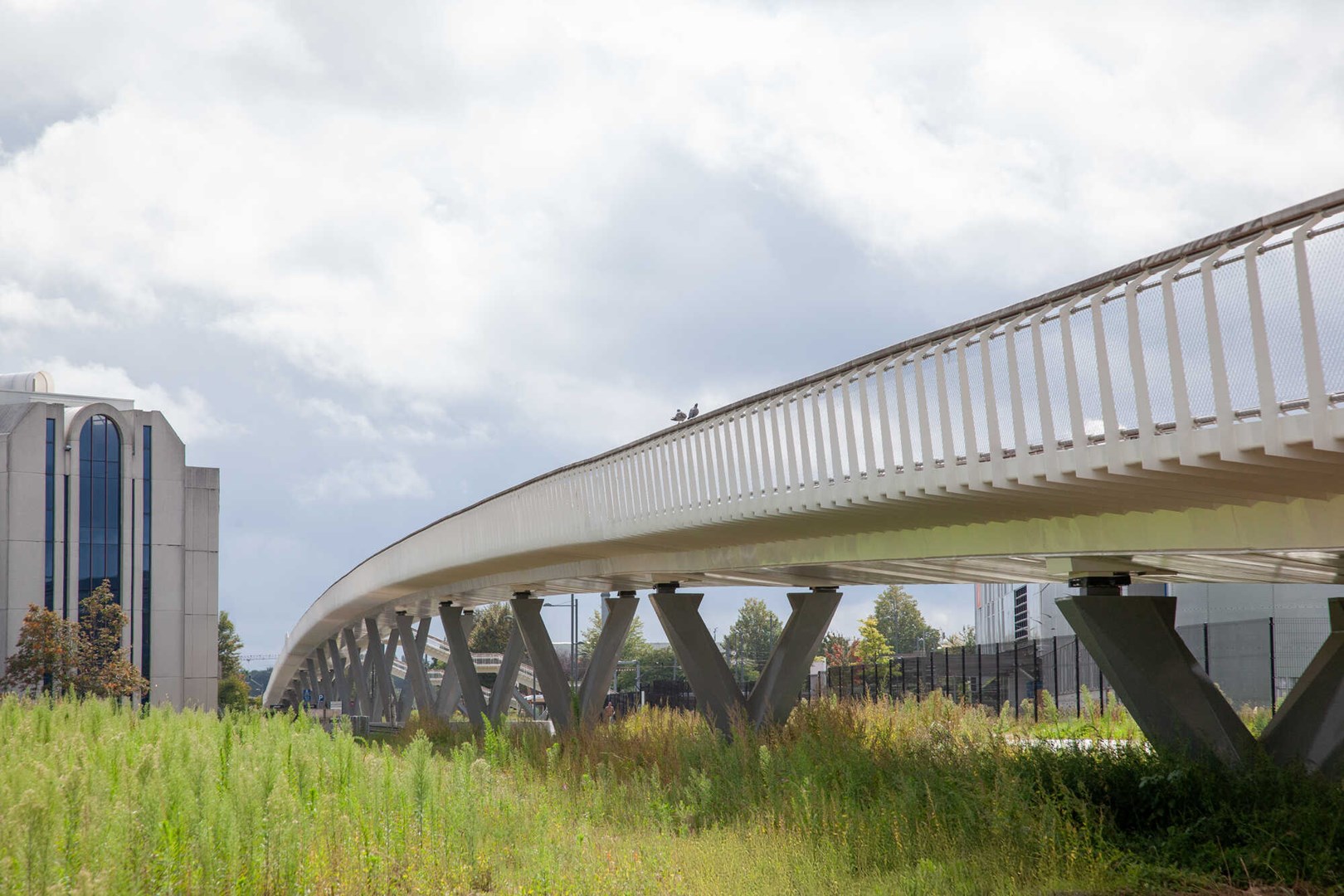 De fietsbrug kan alleen de barrière van de A201 wegnemen als ze zelf geen al te grote uitdaging vormt voor fietsers en voetgangers. Dankzij de lengte van de brug is de oversteek geen steile helling geworden, maar meer een zachte glooiing die voor alle type fietsers comfortabel is te overbruggen en via royale luie trappen kunnen voetgangers de tramhaltes aan weerszijden van de A201 gemakkelijk bereiken. Door het gebruik van twee kleuren in het brugdek, zijn voet- en fietspad visueel veilig van elkaar gescheiden.
