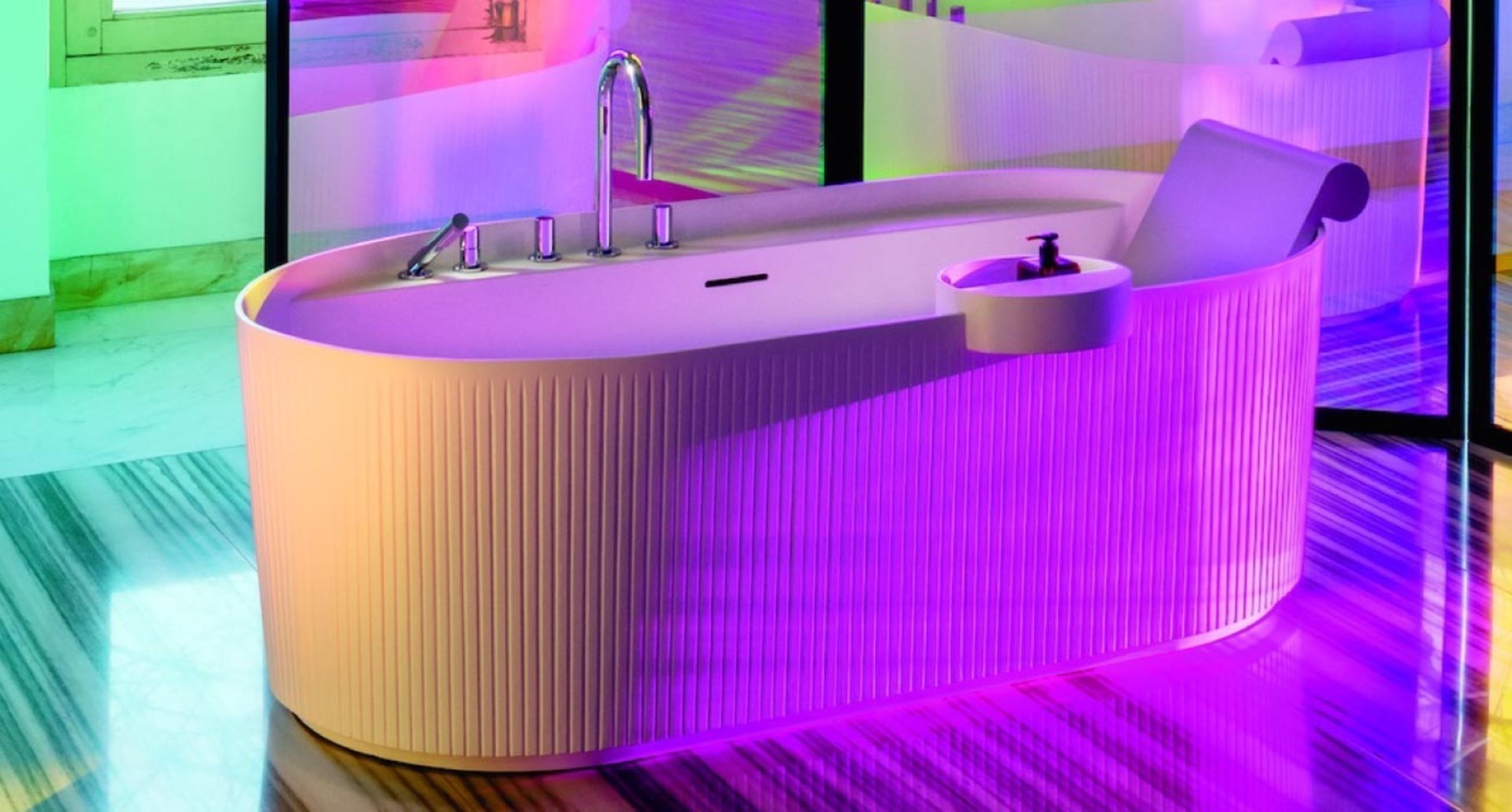 “Betreed een wereld waar slimme ideeën en mooie dingen samenkomen om jouw badkamerervaring te verbeteren.” Zo presenteert LAUFEN zijn SONAR-collectie aan het grote publiek. Het vrijstaande bad in de collectie is gemaakt van het composietmateriaal marbond en heeft texturen die de badkamer, dixit LAUFEN, “echt mooier maken”. Ook de wastafels van de SONAR-collectie, vervaardigd uit zogenaamd saphirkeramik, hebben dankzij hun reliëf een unieke uitstraling.