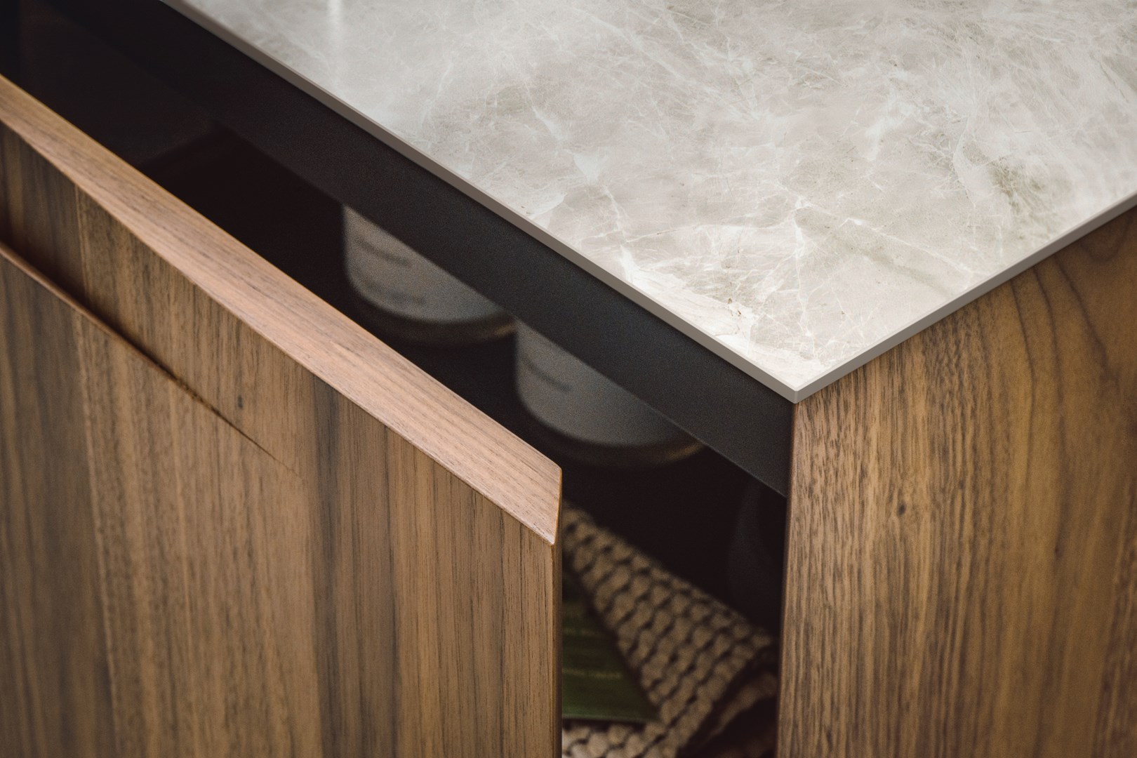 De ARUN collectie weerspiegelt de aandacht voor detail en toont de passie voor vakmanschap van LAUFEN. Elk stuk toont een doorlopende houtnerf die elegant overloopt in de subtiel gebogen, geïntegreerde handgrepen. De gebruikte materialen zijn niet alleen esthetisch aantrekkelijk maar ook duurzaam en milieuvriendelijk, waardoor elk meubelstuk zowel een visueel als ethisch statement maakt.