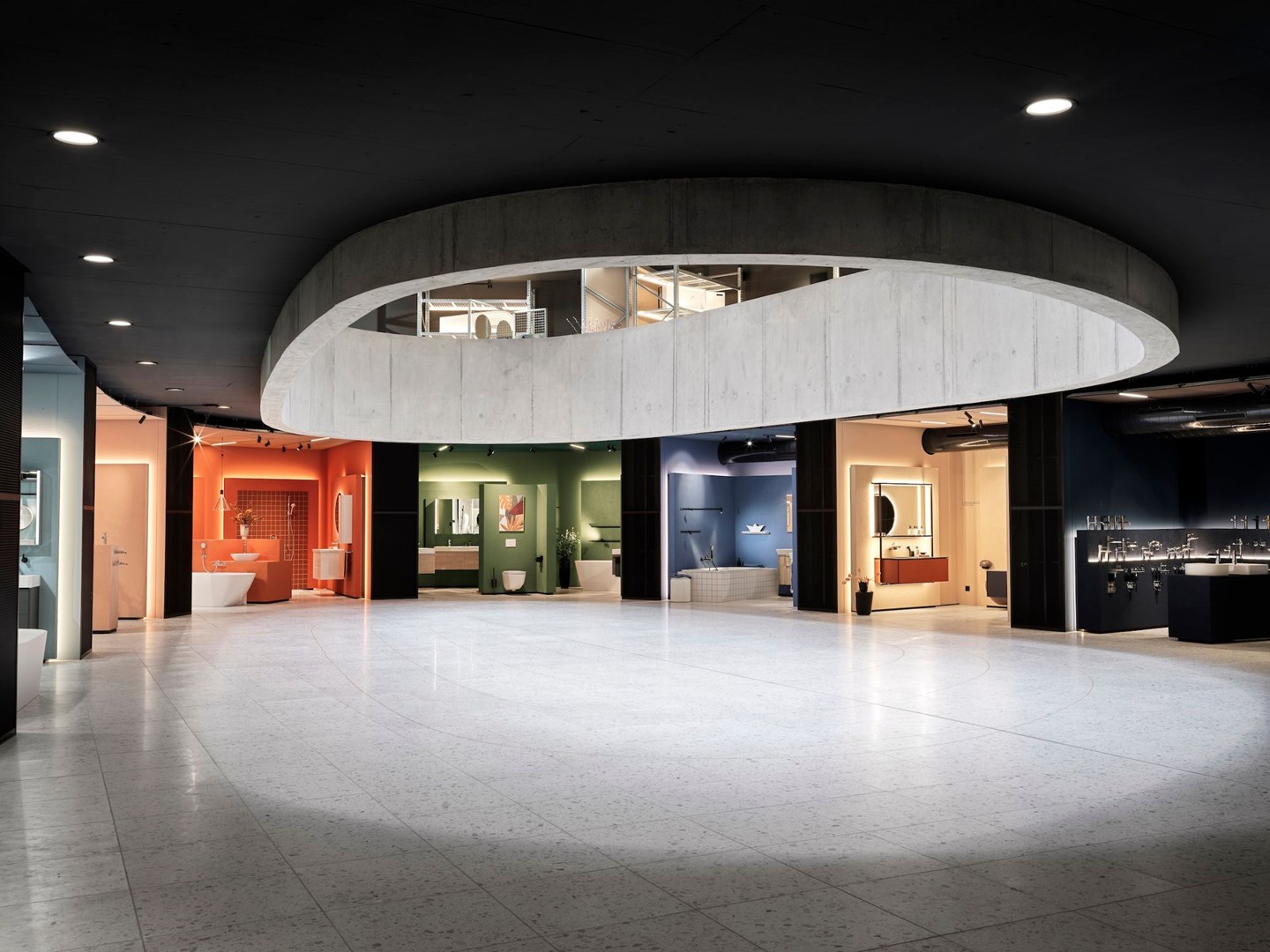 Centraal in het standconcept staat Matter in de dubbele Engelse betekenis van materie en relevantie: dit thema fungeert als rode draad en creëert ruimtes op basis van een sterke en emotionele perceptie van het merk. De Noorse transdisciplinaire studio Snøhetta begon met het concept van Matter om de merkbeleving van LAUFEN te definiëren, die op elegante wijze is weergegeven door de renovatie van het LAUFEN Forum in het hoofdkantoor van het bedrijf, van de LAUFEN space in Wenen en die toepassing vond in het ontwerp van de stand op de Salone del Mobile 2024.