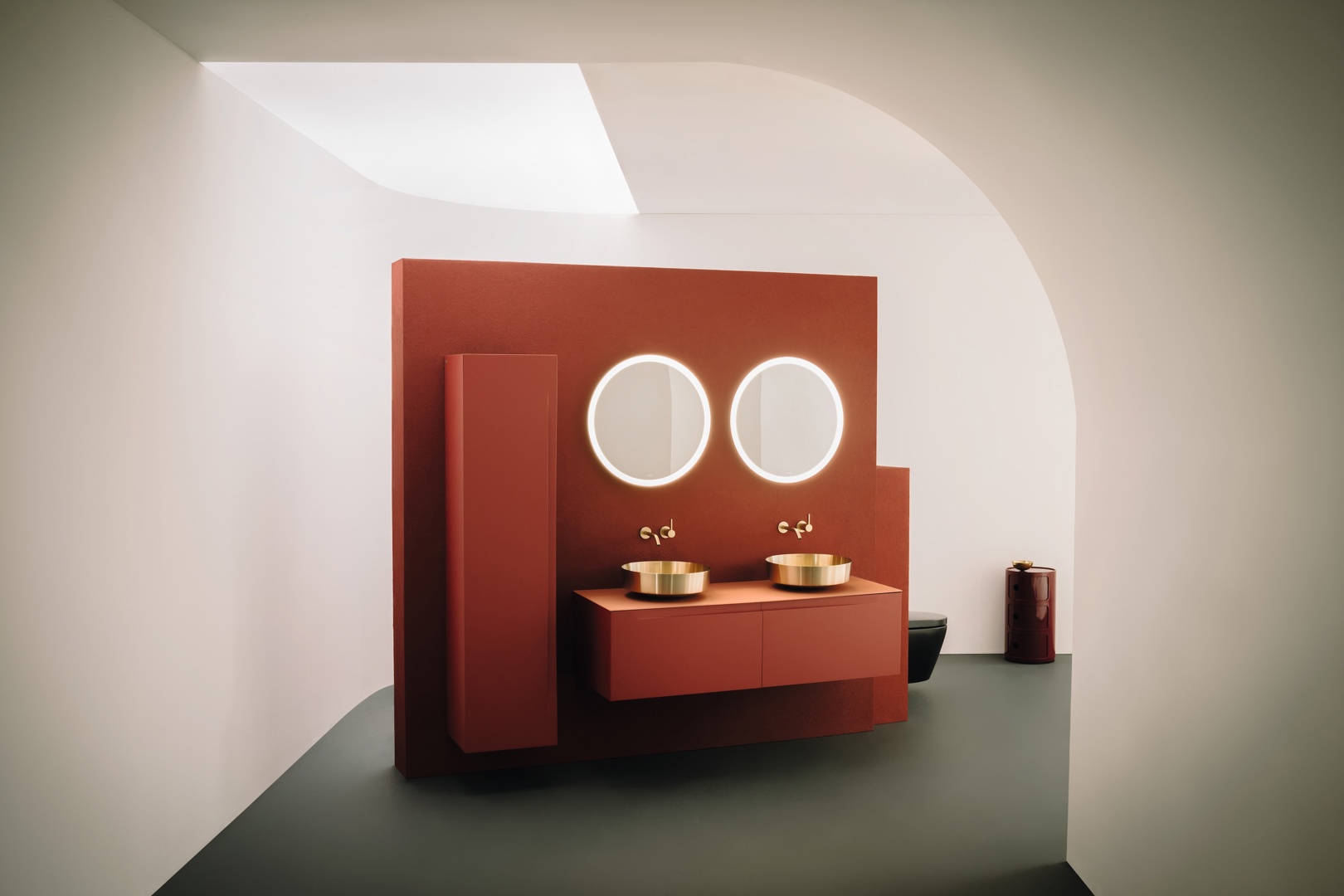 Nieuwe ontwerpen zoals beauTwash, gekenmerkt door een T-vormige geometrie, en een herinterpretatie van de iconische Componibile van Anna Castelli Ferrieri tonen hoe typologie en materiaalinnovatie hand in hand gaan. Deze evolutie illustreert hoe de badkamer steeds meer aansluit bij bredere woonconcepten en interieurarchitectuur.