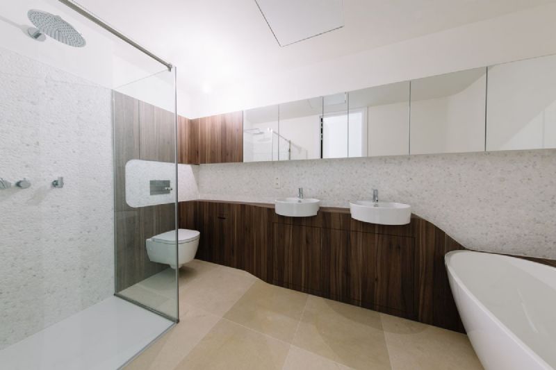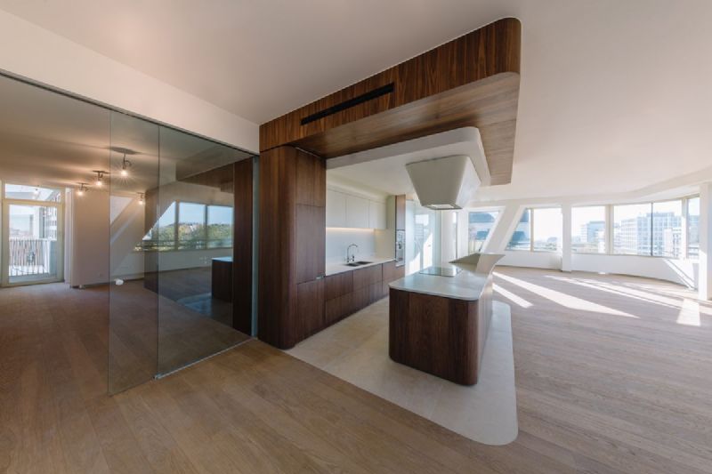 Om de appartementen van zoveel mogelijk daglicht te voorzien, bedraagt de hoogte van de plafonds minstens 2,7 meter. Aan de straatzijde is dit zelfs meer dan drie meter. In het hart van het appartement bevindt zich een open keuken, die bestaat uit grote meubelelementen die samen een informele ruimte vormen. De gevels aan de tuinzijde hebben in tegenstelling tot de rest van het gebouw een horizontale geleding. De ruime balkons dienen om de bewoners rust te bieden in de drukke stad.