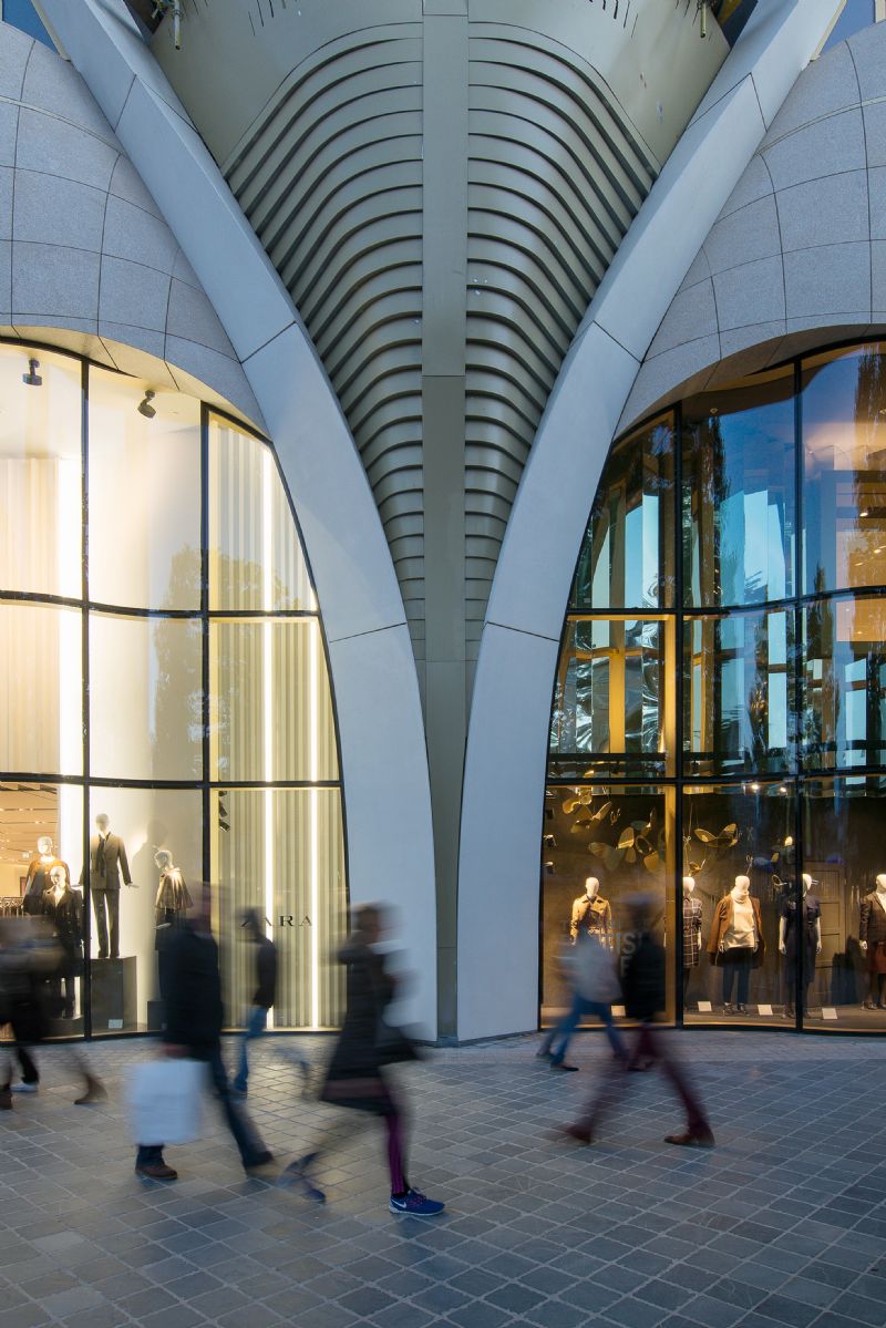 Om het monolithische karakter van de standaard bouwblok te vermijden, is de gevel van Le Toison d’Or gelaagd gefragmenteerd. De frames omsluiten de balkons van de appartementen, de tussenruimtes op het niveau van de plint zorgen voor grote glasvlakken voor de winkels. “We vonden het belangrijk dat de winkels zo open en zo licht mogelijk waren. Tevens wilden we een contrast aanbrengen met de schijnbare soliditeit van de bovenste verdiepingen,” zegt architect Ben van Berkel van UNStudio. “We hebben bewust de illusie gecreëerd dat de verticale ballonvormige frames het gebouw dragen. Daardoor lijkt het alsof het hele blok de potentie heeft boven de boulevard te gaan zweven.”