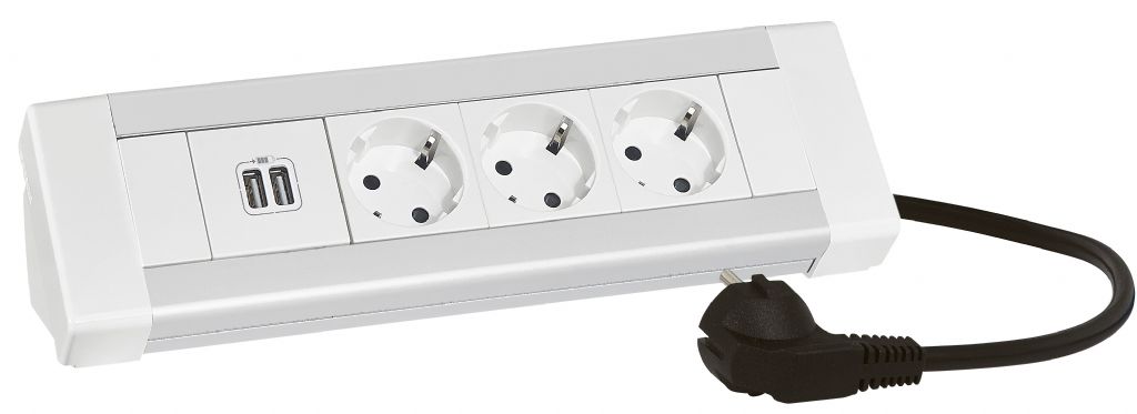 De meervoudige tafelcontactdozen van Legrand koppelen functionaliteit en esthetiek. De elegante verticale contactdoos is beschikbaar in wit/grijze en zwarte afwerking, en past in het interieur van elk kantoor. Meervoudig betekent hier 4 x 2P+A, te bedienen met één centrale schakelaar, en een sokkel met één USB- en één micro USB-lader. De kolom kan om haar as draaien, heeft een geïntegreerde beveiliging tegen overspanning en wordt geleverd met 2 meter snoer (3G 1,5 mm²).