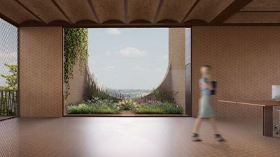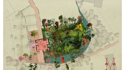 Het eerste concept kwam voort uit de studie van de plattegrond van het Engelse kasteel, een centrale open ruimte met logistieke kamers in de dikke muur errond. De dikke muurmassa is een ideale thermische buffer terwijl de natuur op een overweldigende manier het gebouw binnendringt.