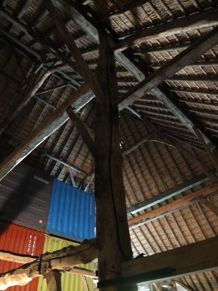 De schuur werd in 19656 afgebroken in het polderdorp Oorderen, dat plaats moest ruimen voor de uitbreiding van de Antwerpse haven. Nu is het de thuishaven van een multimediale tentoonstelling in het Openluchtmuseum van Bokrijk.