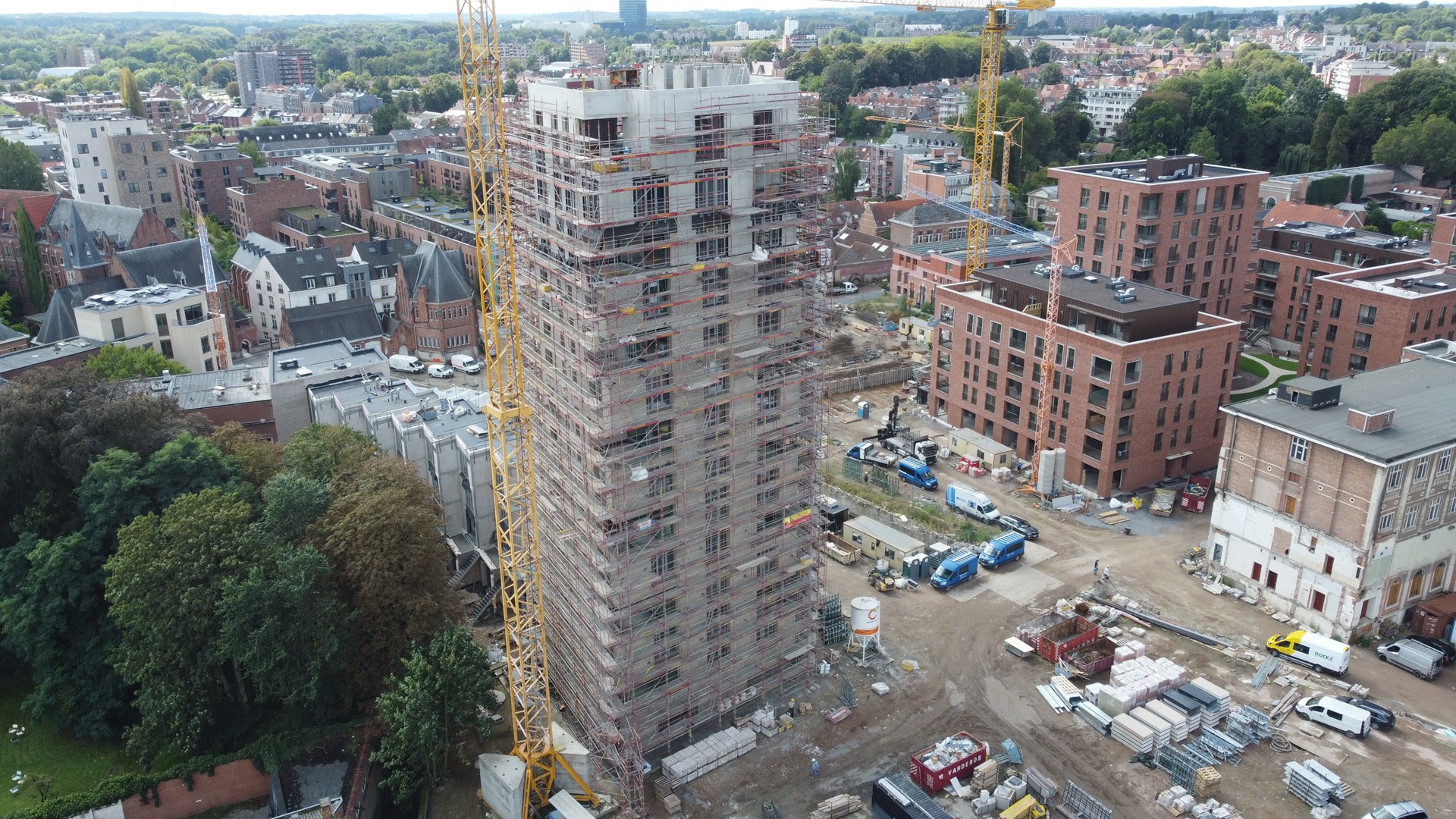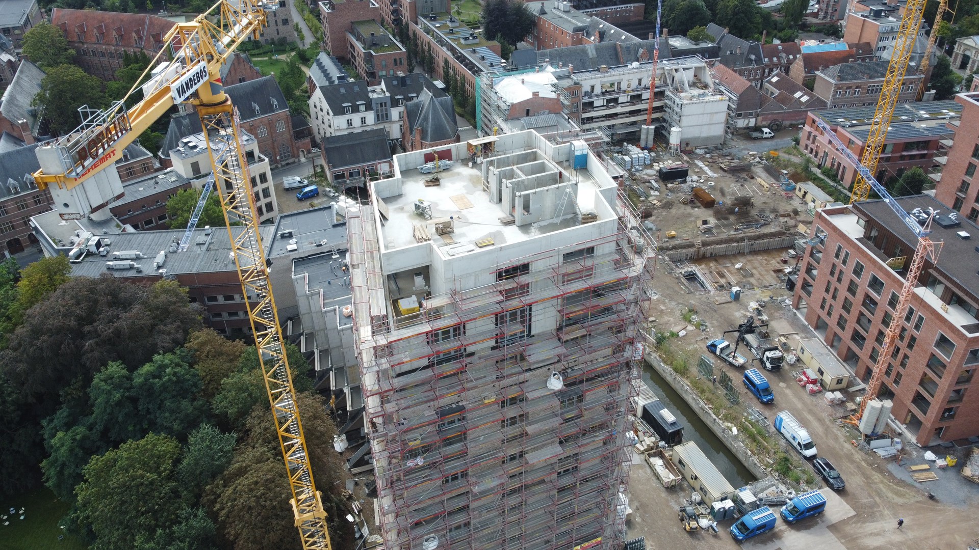 Leuvense woontoren van David Chipperfield Architects bereikt hoogste punt