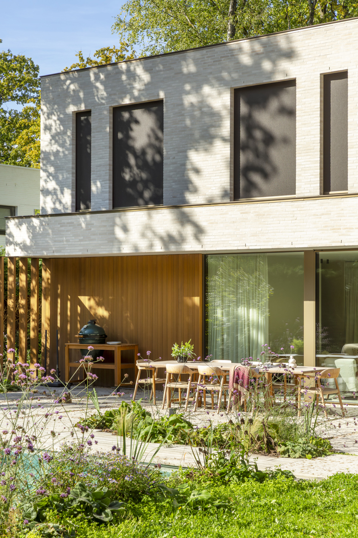 LOOV bevindt zich in een rustige, groene omgeving en speelt bewust in op die context. Aan de straatzijde presenteert de woning zich eerder gesloten en ingetogen, ten voordele van de privacy van de bewoners. Aan de tuinzijde, daarentegen, opent het volume zich maximaal, met grote glaspartijen die het landschap naar binnen trekken.