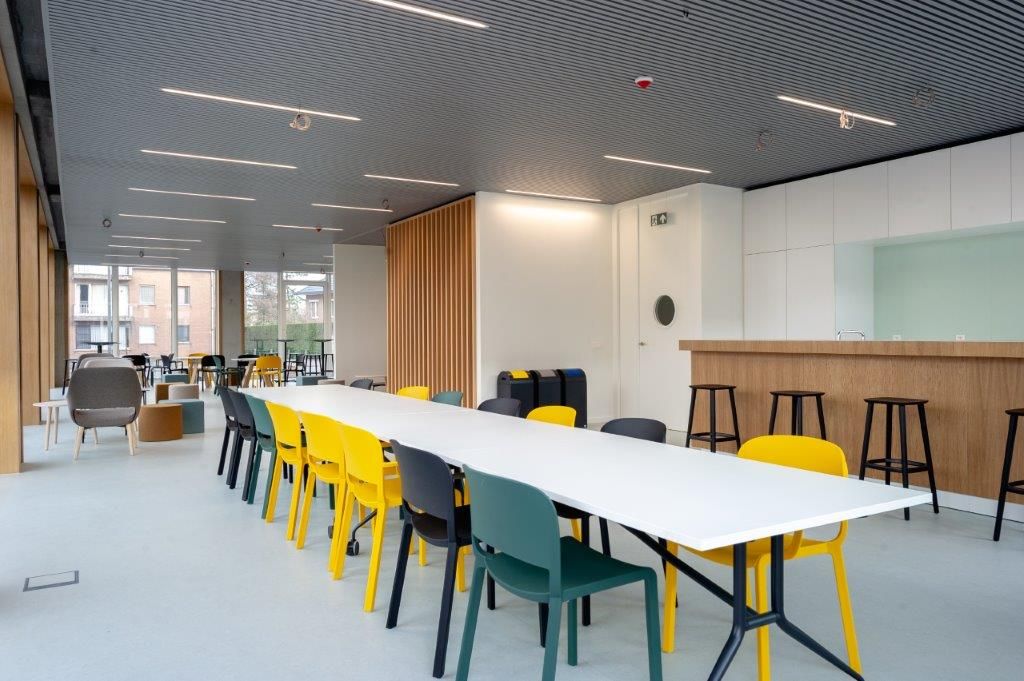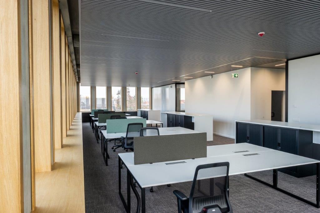 Het mag dan ook niet verwonderen dat de lat vanaf het prille begin uitzonderlijk hoog lag. Door het gebouw goed acht maanden na de eerste spadesteek op te leveren, gaven Willemen Construct en de betrokken onderaannemers een fameus visitekaartje af. “Begin 2018 hebben we de voorbereidende werkzaamheden opgestart, en in april zijn we effectief begonnen met het uitgraven van de bouwput. Tegen het zomerverlof was de ruwbouw wind- en waterdicht, op 30 november vond de voorlopige oplevering plaats en vlak voor het kerstverlof zijn we met z’n allen verhuisd”, licht Wim Briels toe.