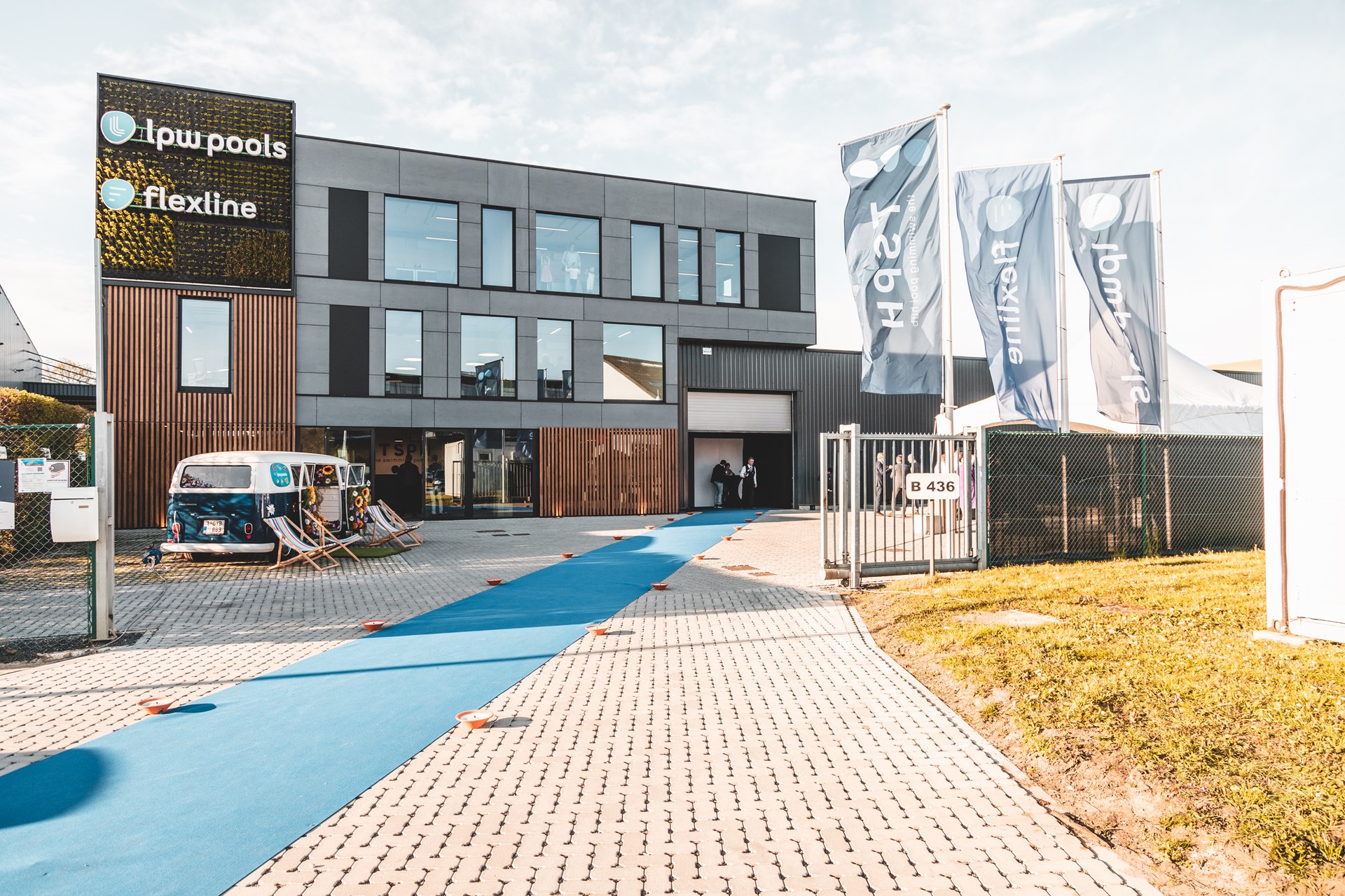 Het nieuwe gebouw van LPW Pools werd op de bestaande locatie gezet door het Belgisch bouwbedrijf BuildUp, pionier in het ontwikkelen en herdenken van innovatieve en duurzame oplossingen op gebied van modulair bouwen. Een bedrijf in handen van dezelfde ondernemersfamilie die destijds met LPW Pools een revolutie in de zwembadsector teweegbracht.