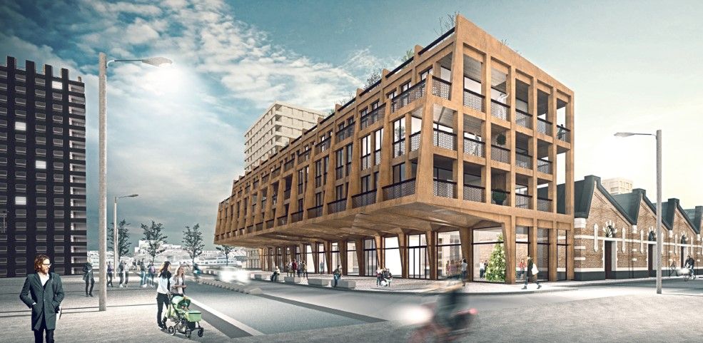 Zestien luxeappartementen op vijf meter hoogte die - bijna letterlijk - ‘zweven’ boven het Limaplein op ‘t Eilandje. Dat is in een notendop hoe het gloednieuwe Montevideo-project eruit zal zien. De eerste verdieping van het nieuwe gebouw én alle drie de verdiepingen erboven zullen maar liefst 13 meter uitsteken met een overkraging - oftewel een porte à faux - over de volledige breedte van de appartementen. Dit technisch huzarenstukje is haast ongezien in ons land, zeker voor een residentiële bouw. Speciaal voor dit project neemt ontwikkelaar DCA Woonprojecten een team van toparchitecten - waaronder M2 Architecten - onder de arm.