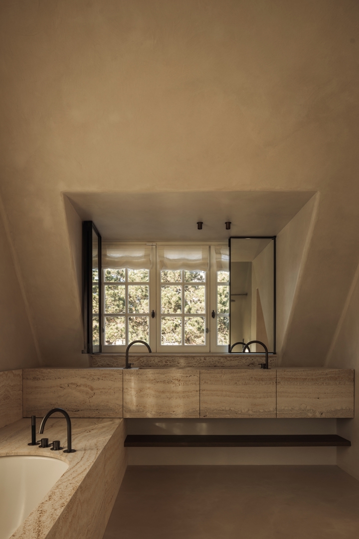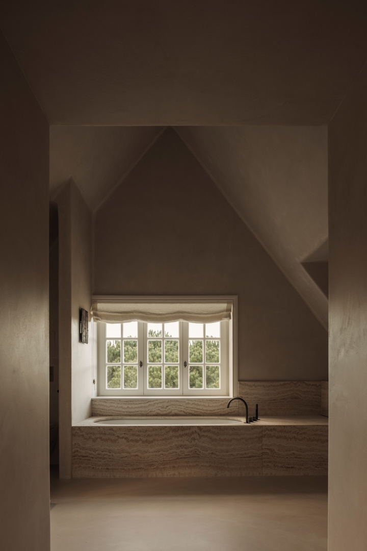 De materialisatie van het interieur sluit aan bij die ingetogen benadering. Natuurlijke en duurzame materialen vormen de basis van het palet, met aandacht voor tactiliteit en veroudering. In de badkamers vertaalt zich dat in een combinatie van edele afwerkingen en heldere lijnen, waarbij functionaliteit en esthetiek in balans worden gebracht zonder overdaad.