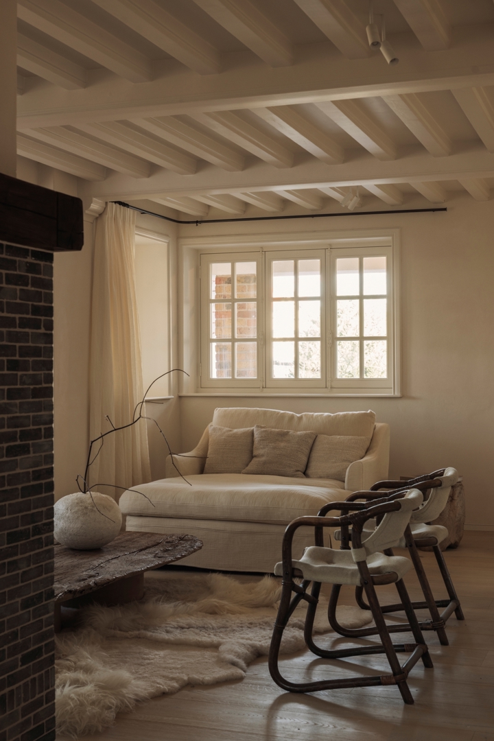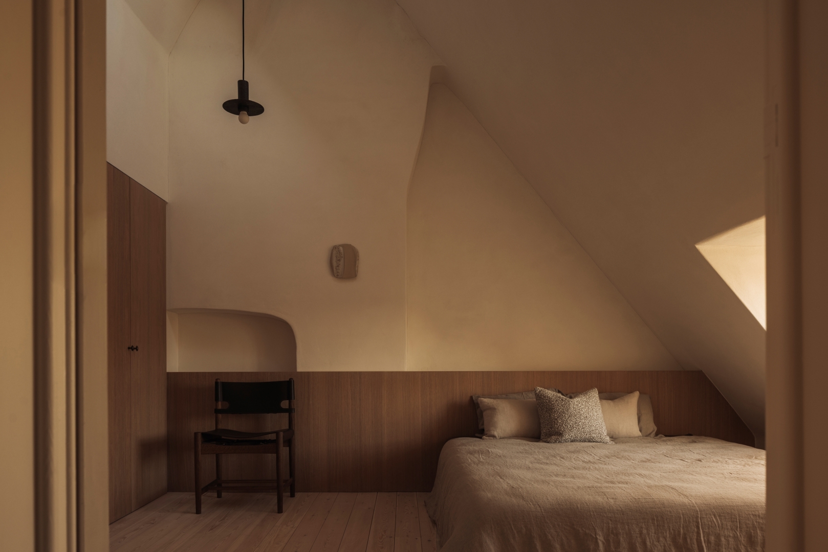 In het ontwerp wordt een evenwicht gezocht tussen openheid en geborgenheid. Ruimtelijke continuïteit en lichtinval spelen een centrale rol, maar worden afgewisseld met meer intieme zones die refereren aan de oorspronkelijke indeling. De kamers zijn sober uitgewerkt, met een nadruk op rust en proportie. Die terughoudende benadering creëert een coherente woonervaring waarin verschillende functies naadloos in elkaar overlopen.