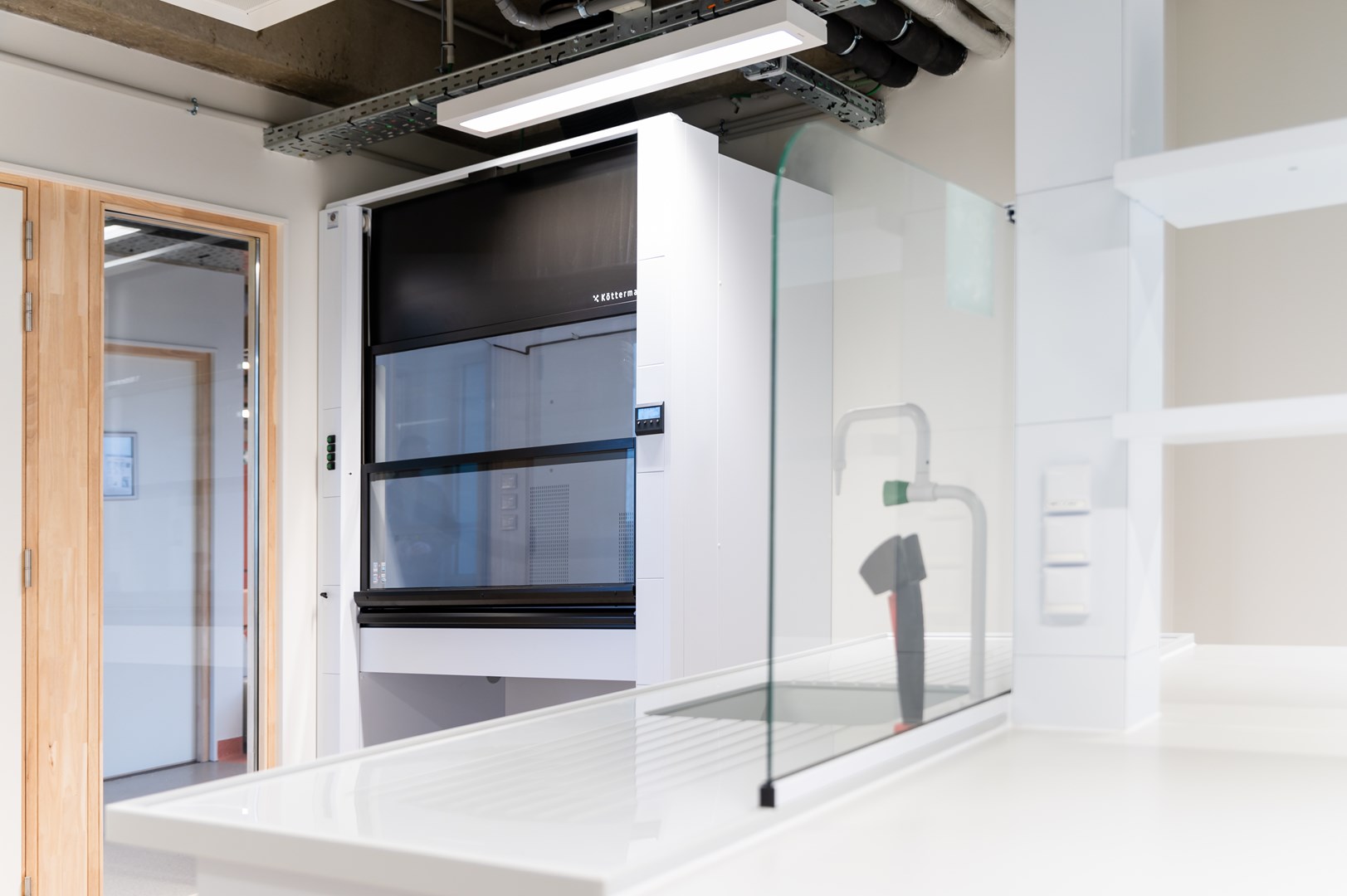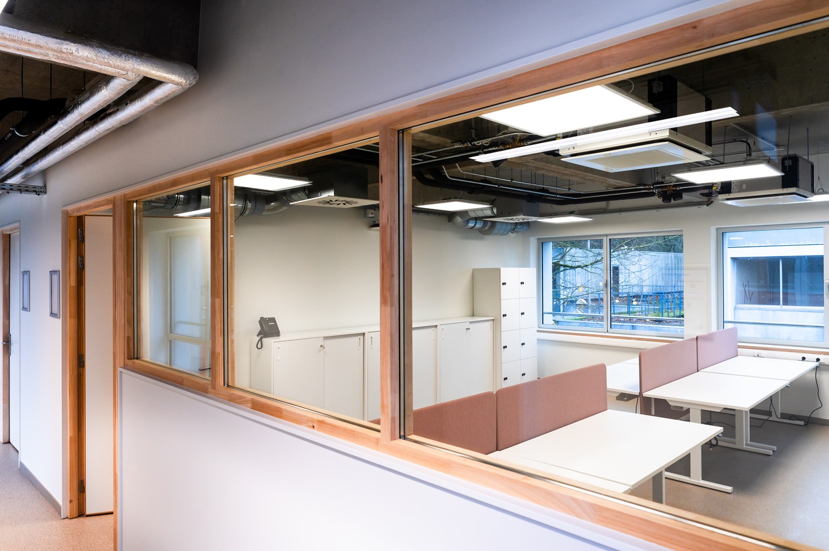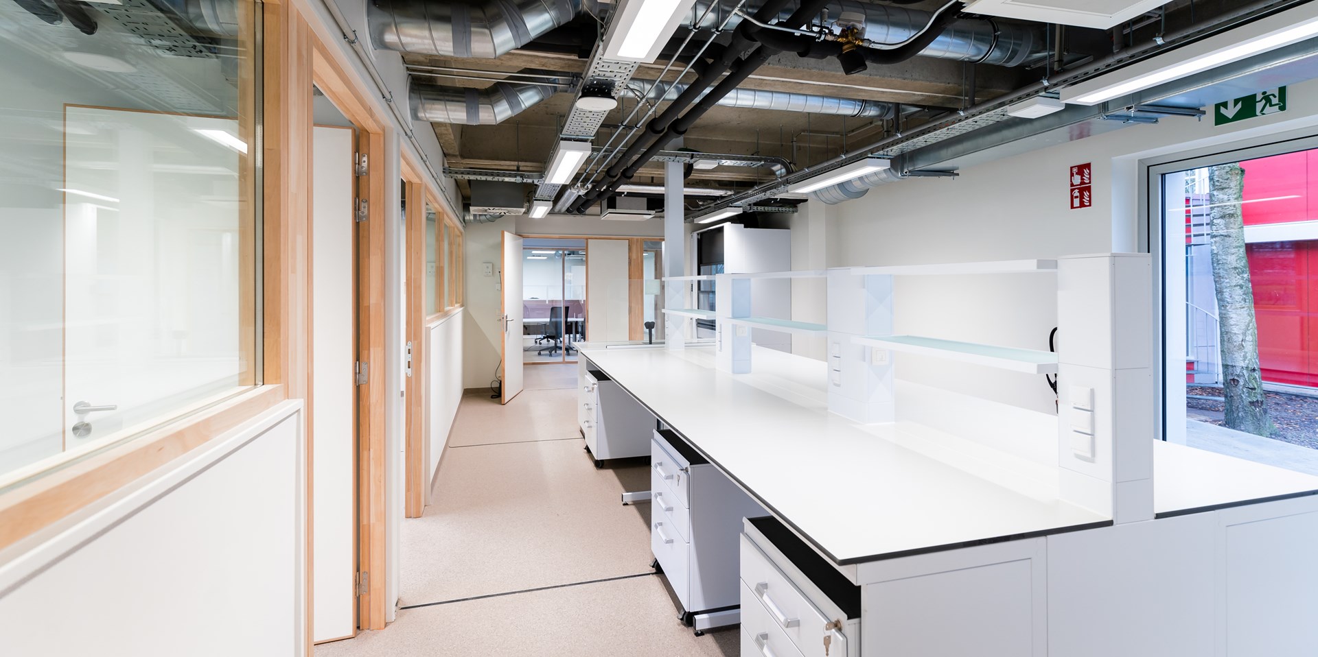 De herbestemming van de voormalige studentenkoten, ontworpen door architect Willy Van Der Meeren in de jaren 70, verliep in twee stappen. Eerst werd het gebouw door MAKER architecten gestript tot een kale betonnen structuur en vervolgens wind- en waterdicht gemaakt. In de tweede fase, uitgevoerd via een design-and-build-formule onder supervisie van het infrastructuurprojectbureau van de VUB, werden de laboratoria en kantoren ingericht.