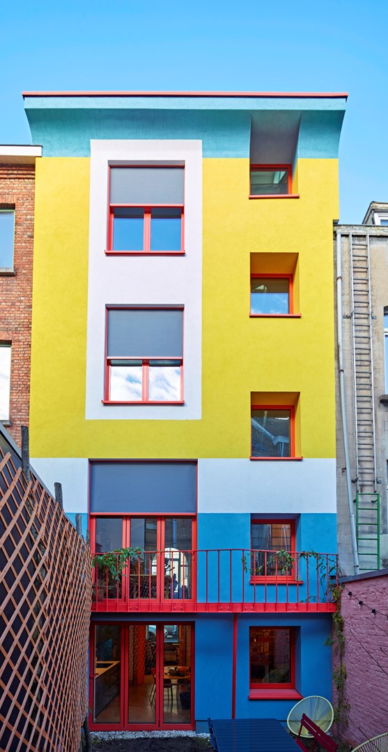 Toen Thomas Roelandts van Marge architecten een herenhuis in het centrum van Gent overnam, trof hij een perceel aan dat volledig was volgebouwd. Als nieuwe eigenaar én ontwerper koos hij resoluut voor een afslanking van het bouwvolume en een meer verticaal georganiseerde woonomgeving. Zo ontstond een stadstuin van zo’n 24 vierkante meter bij de woning, die met zijn kleurrijke achtergevel een glimlach op je gezicht tovert. Doekzonwering en ventilatie van Renson bleken de perfecte match voor een gezond en comfortabel binnenklimaat in deze renovatie.